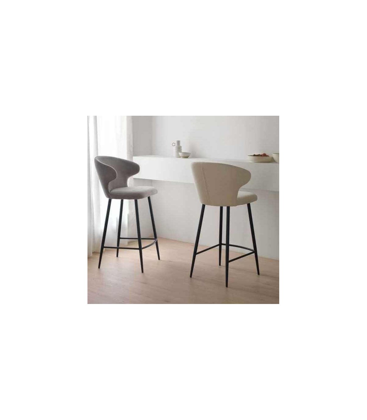 🪑 Set 2 taburetes para Barra en Chenilla Beige y Metal Negro – Estilo Contemporáneo y Elegante ✨