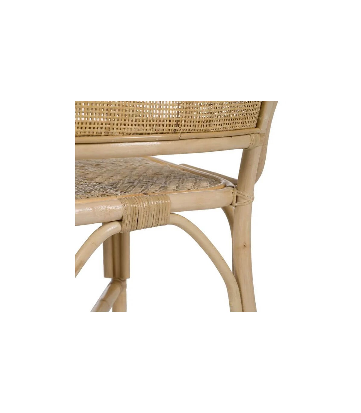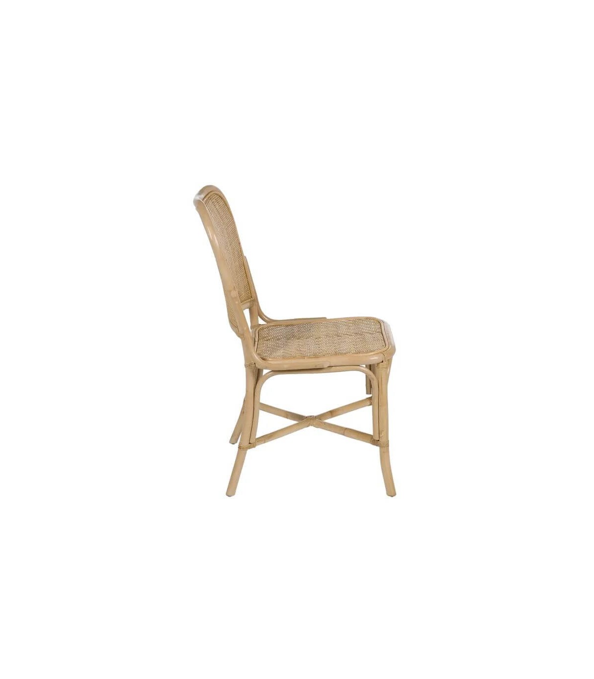 Silla realizada en ratán natural trenzado a mano, perfecta para ambientes de estilo colonial donde priman las fibras naturales.