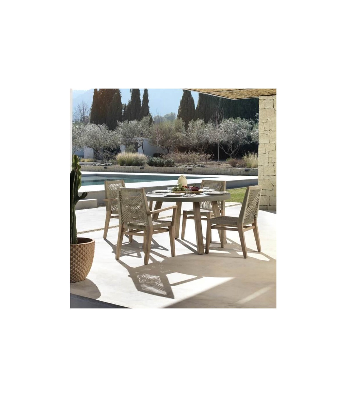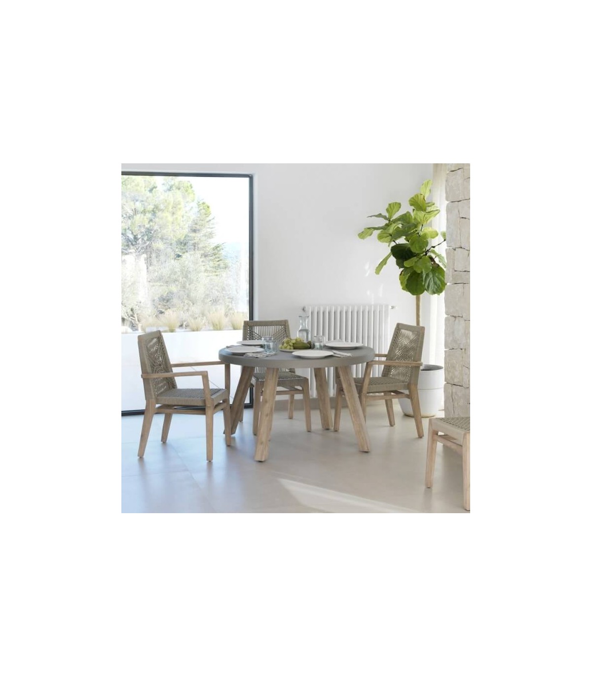🛠️ Materiales: madera maciza de teca y fibras naturales