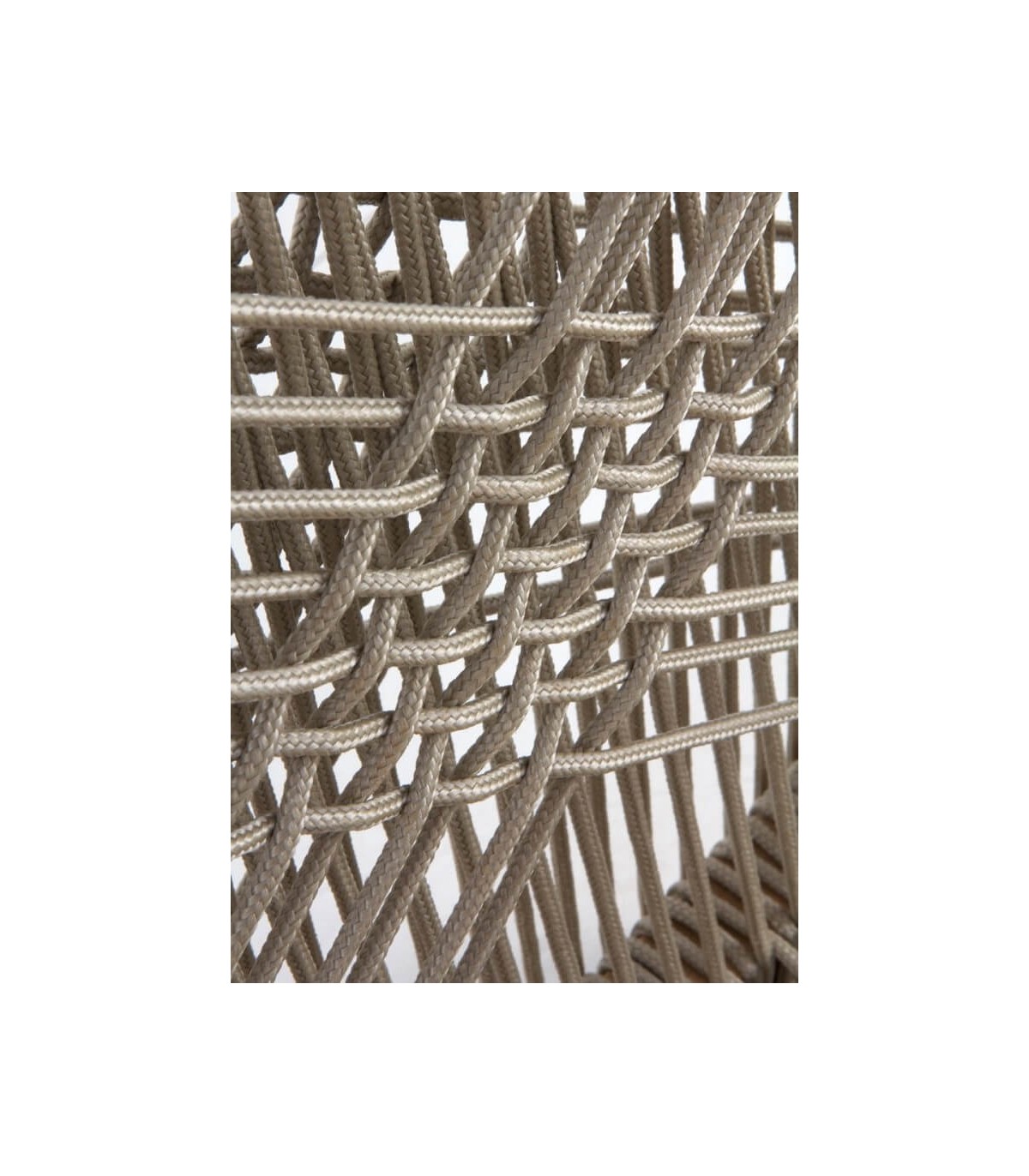 • Acabado, artesanal, madera natural patinada, estructura de aluminio recubierta de cuerda color topo.