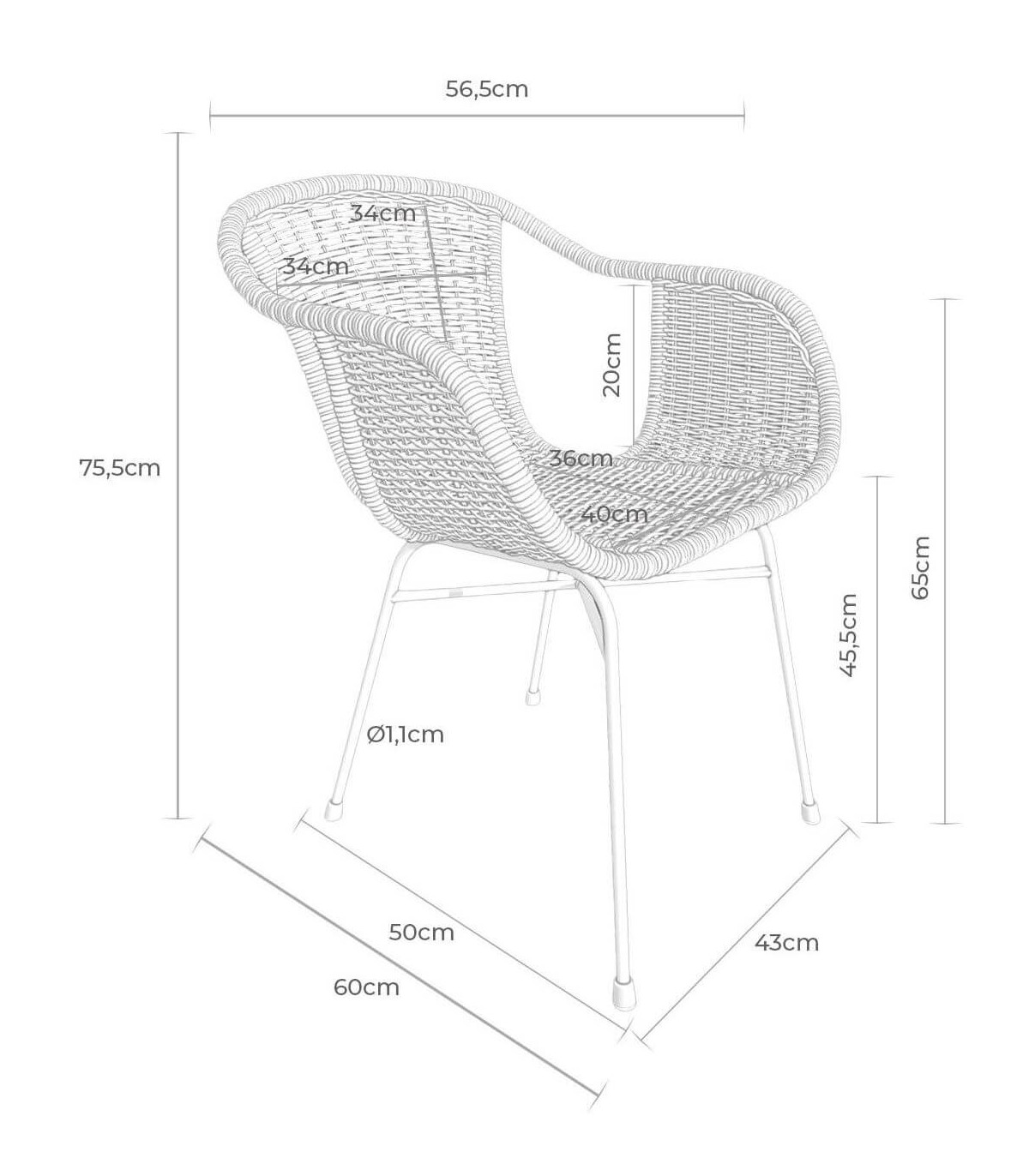 🎨 Acabado: Estructura metálica blanca con trenzado de ratán natural de acabado artesanal.