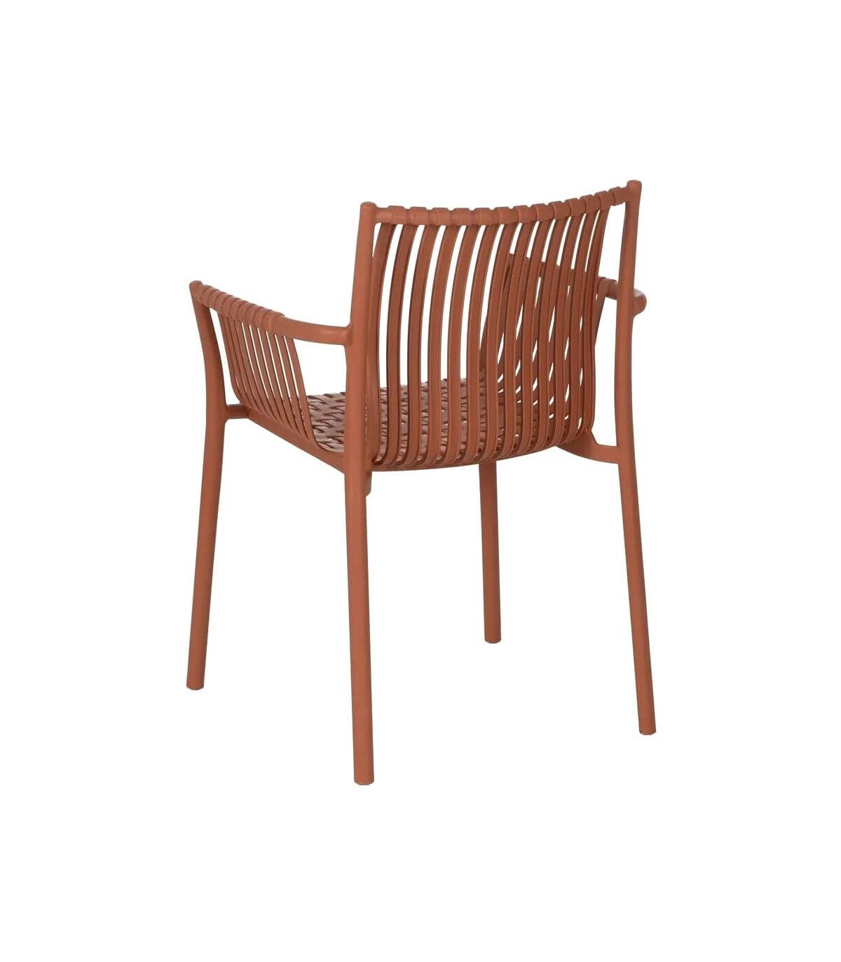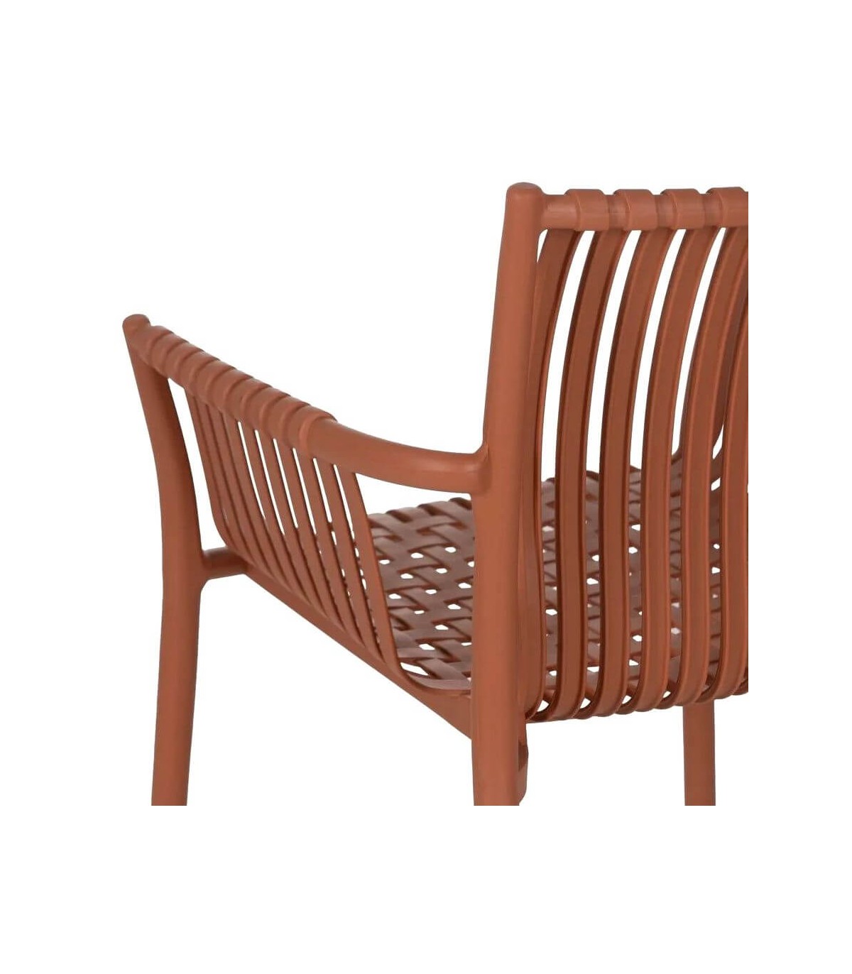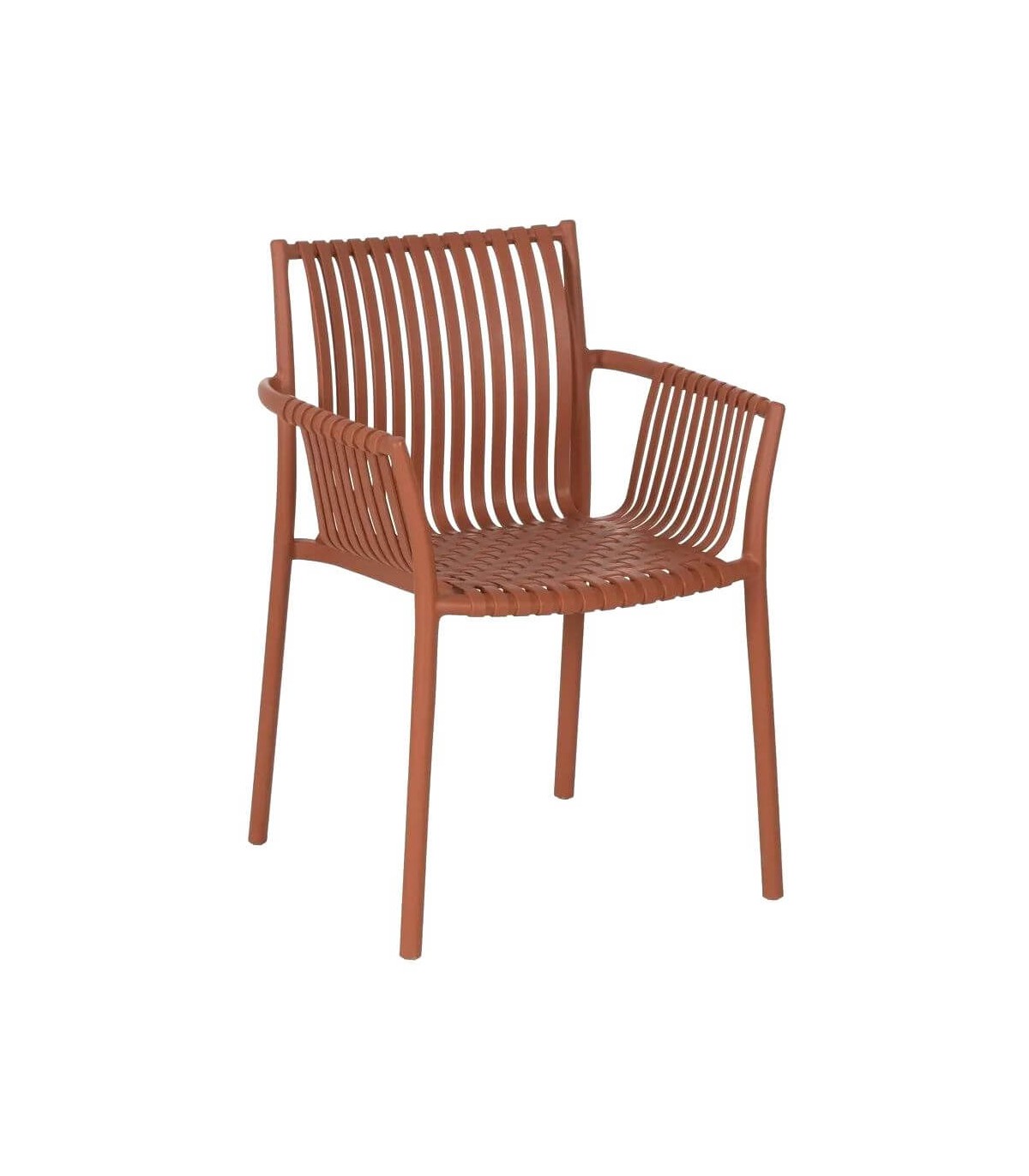 Sillón de comedor apilable para exterior realizado en polipropileno color caldero, un sillón resistente y cómodo que encaja bien en todo tipo de ambientes. Perfecta para hogar o para hostelería.