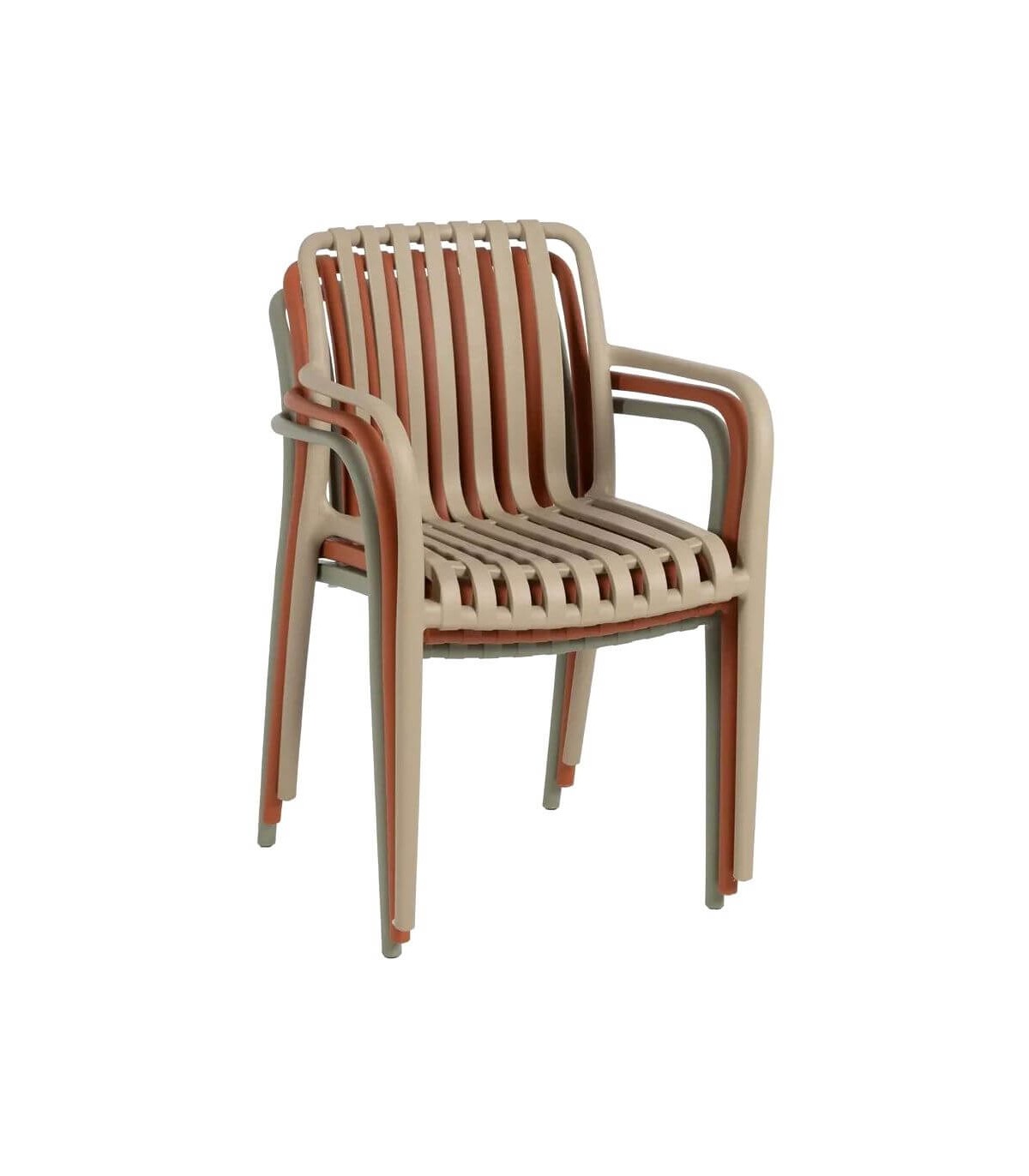 • Sillón de comedor apilable, perfecto para exterior, estilo contemporáneo.