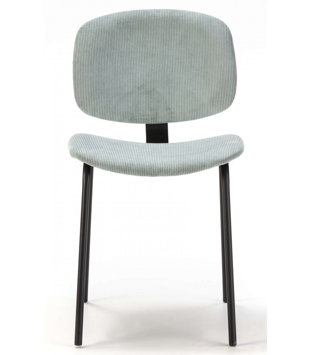 Silla estructura en metal negro tapizada en  pana color aguamarina, para cualquier tipo de decoración, la estructura metálica le aporta solidez mientras que el mullido del tapizado mucho confort, existe en más colores.