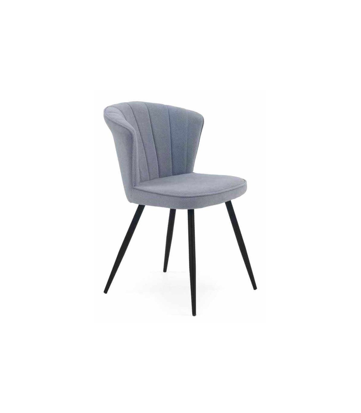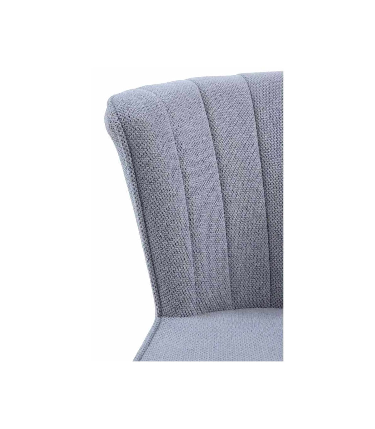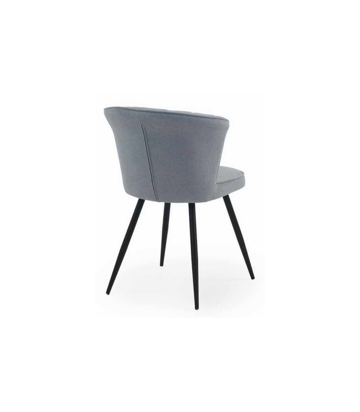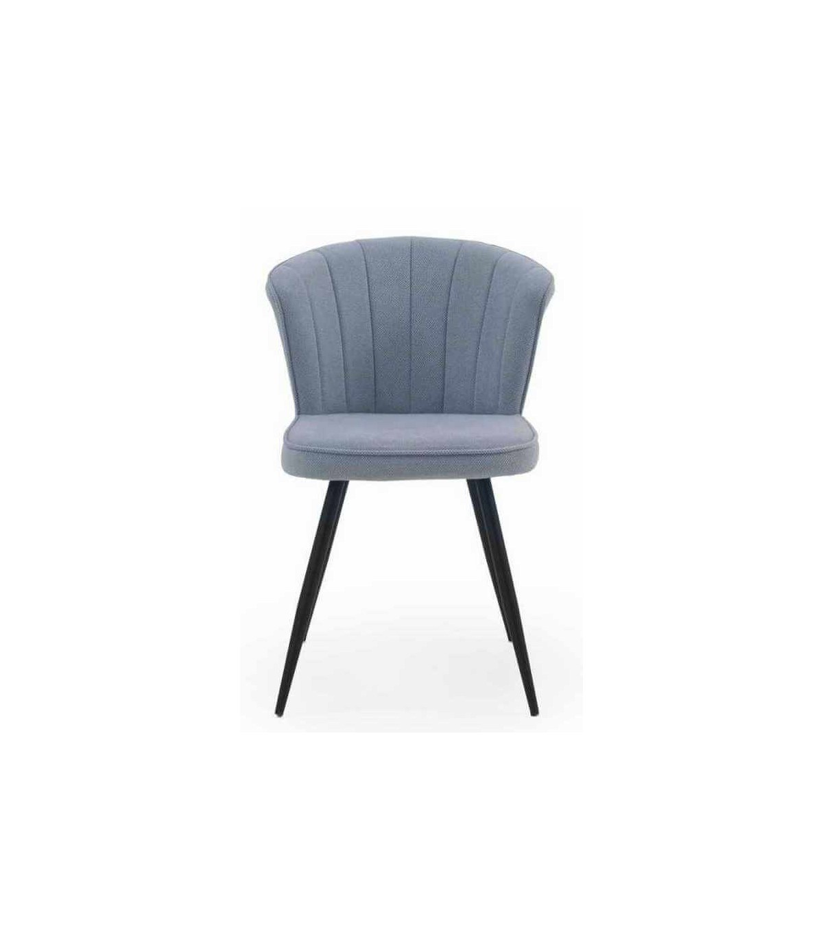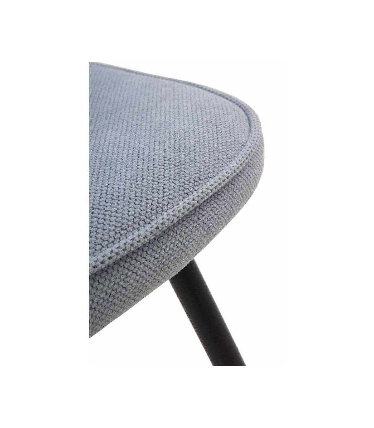 - Acabado, tapizada en chenilla color celeste, patas en metal negro.