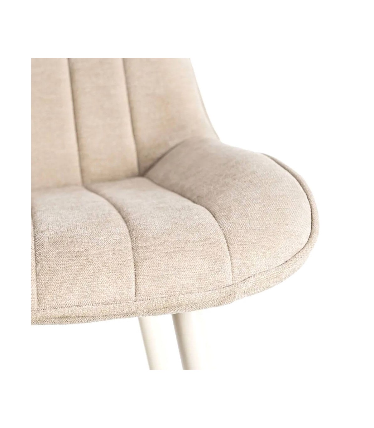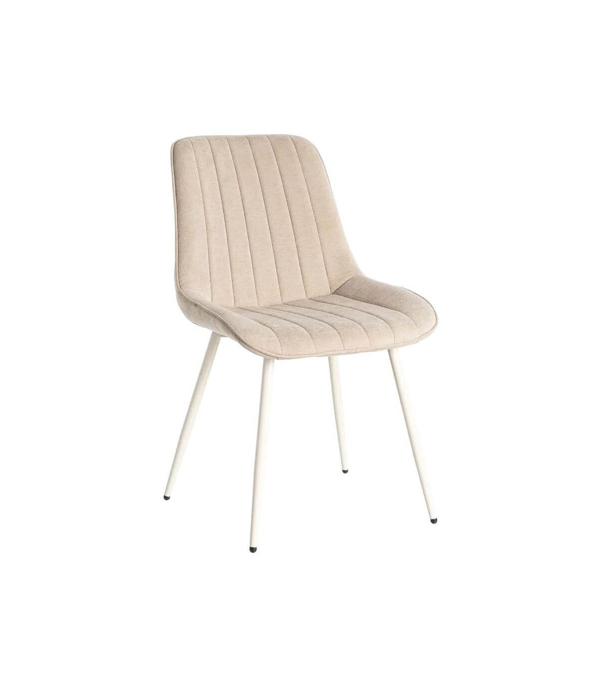 Silla de comedor contemporánea que combina líneas limpias y un diseño versátil capaz de integrarse en múltiples ambientes actuales. El tapizado en tono beige aporta serenidad y calidez, creando un asiento elegante que realza tanto espacios domésticos como proyectos contract.