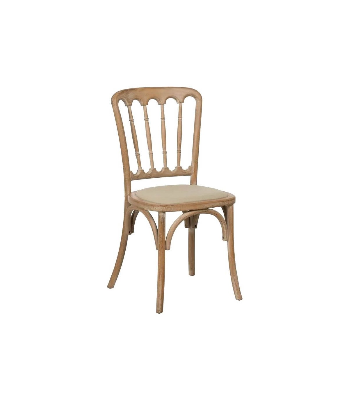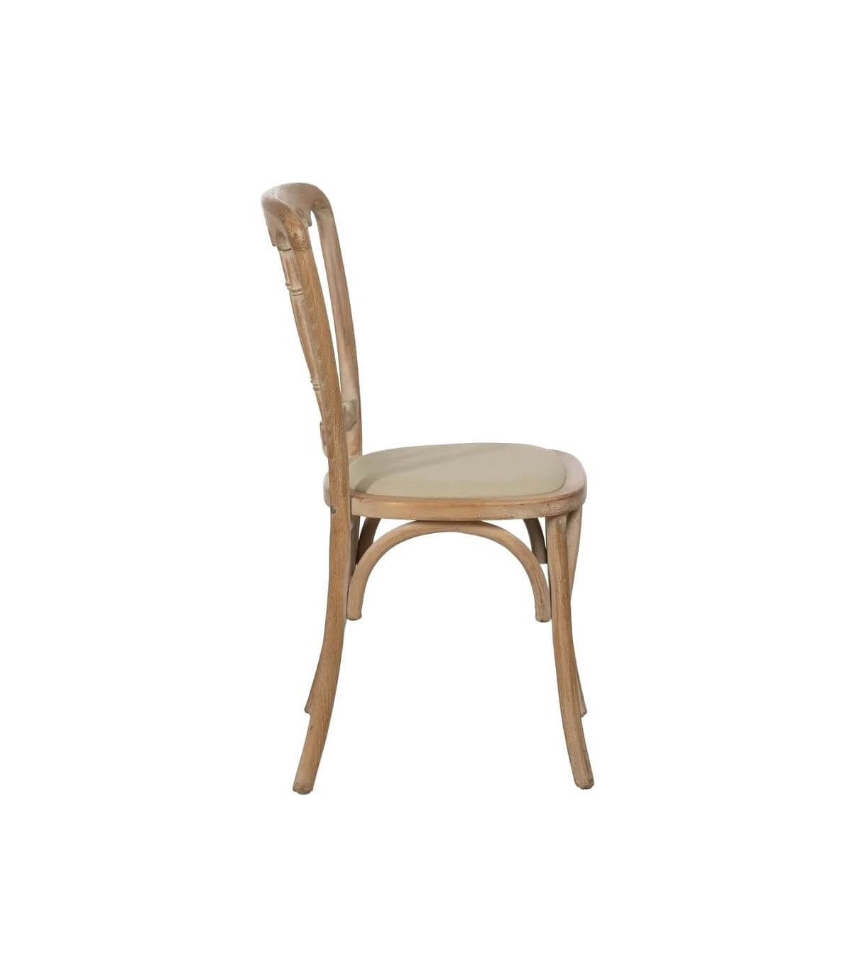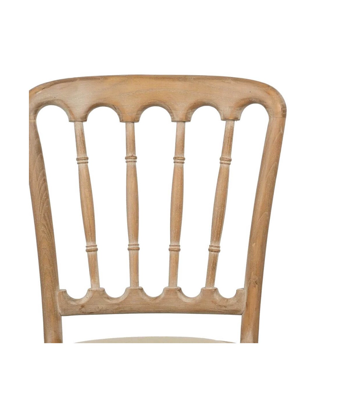 Silla de comedor cómoda, de estilo clásico, realizada en madera de caucho natural tapizada en color beige, una silla de calidad que le dará a tu comedor un toque fresco y clásico a la vez.