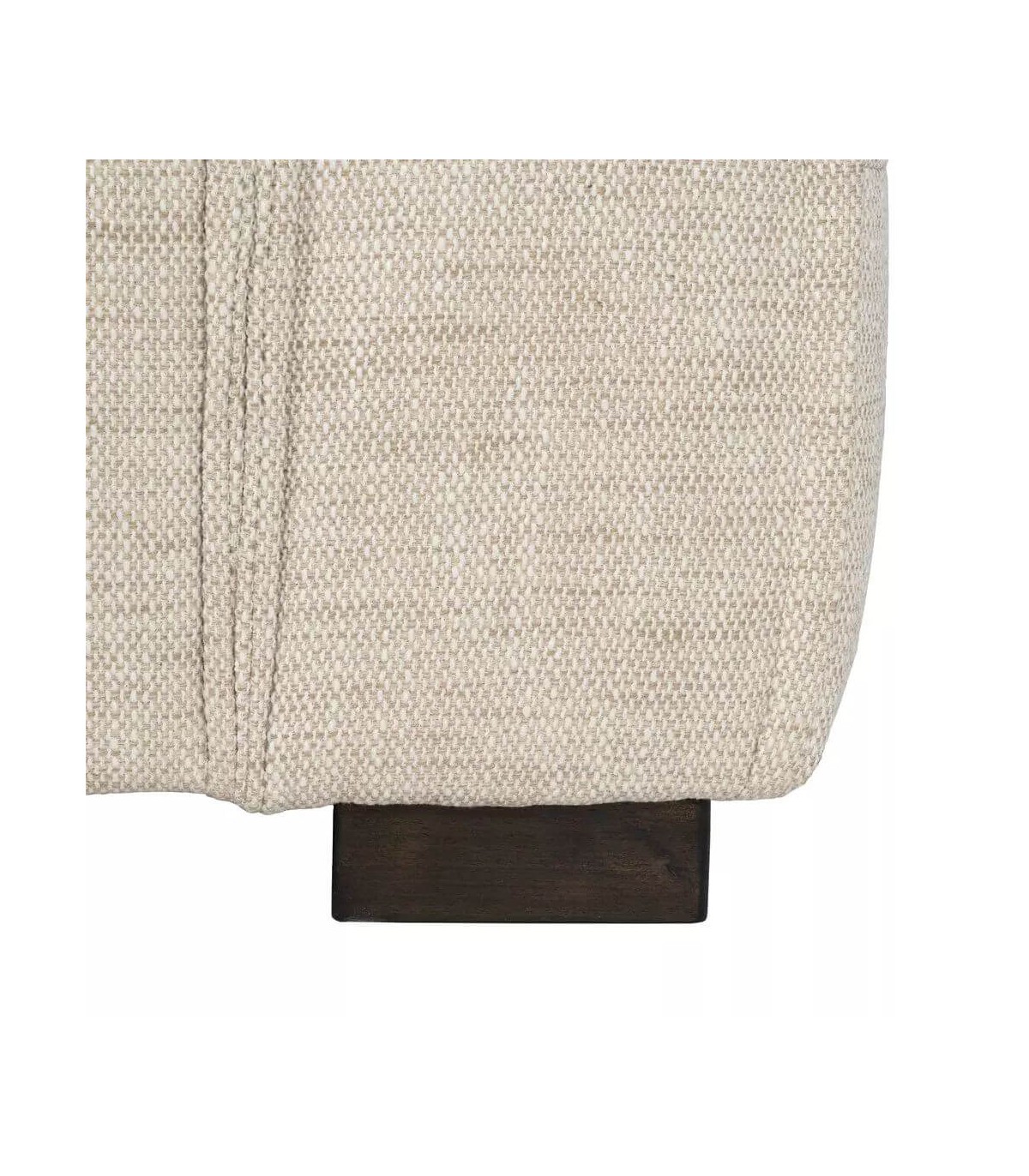 - Acabado, patas en madera color nogal, textil color blanco roto.