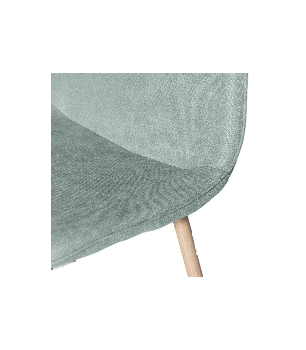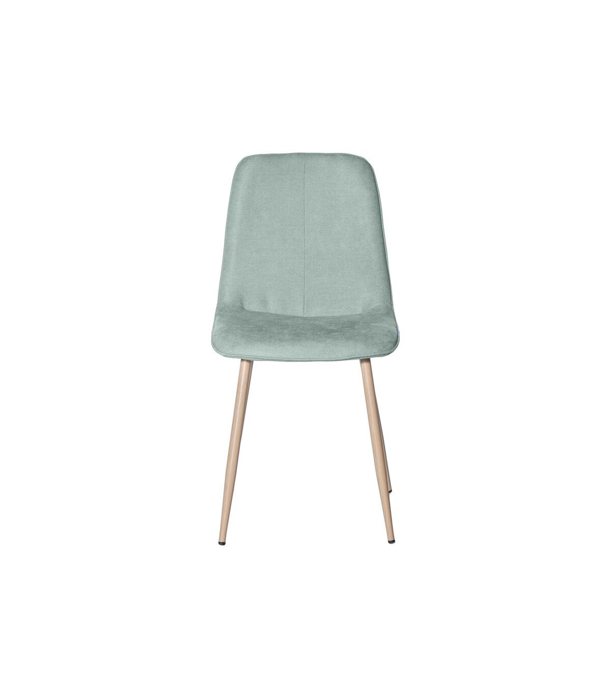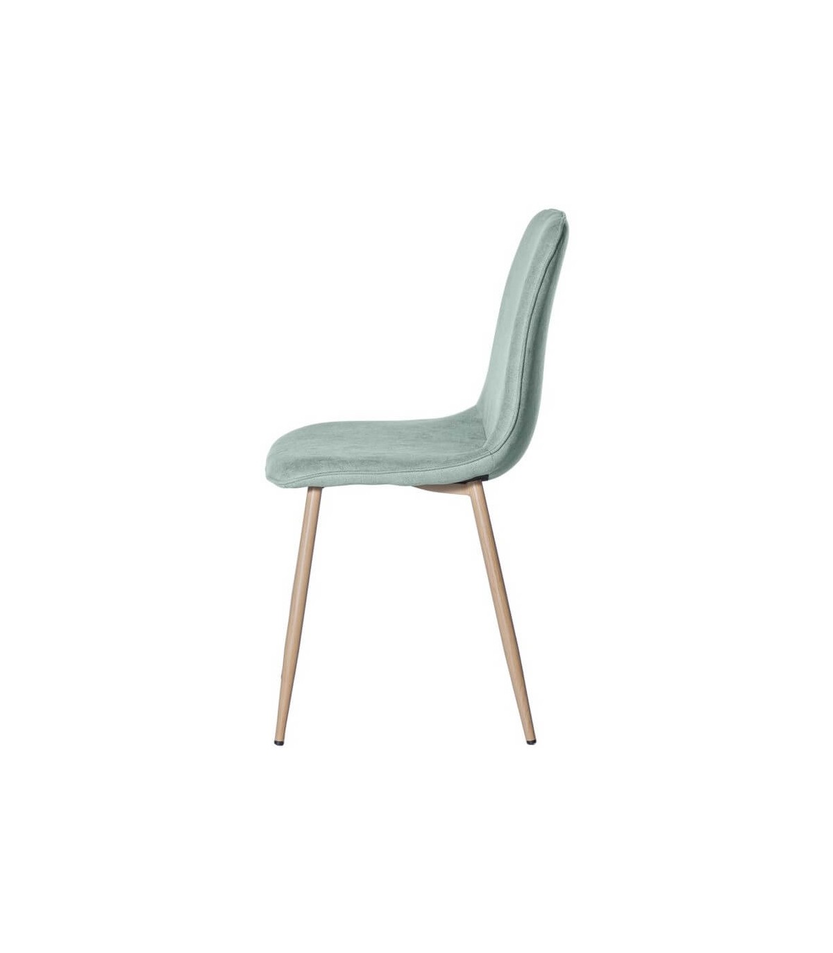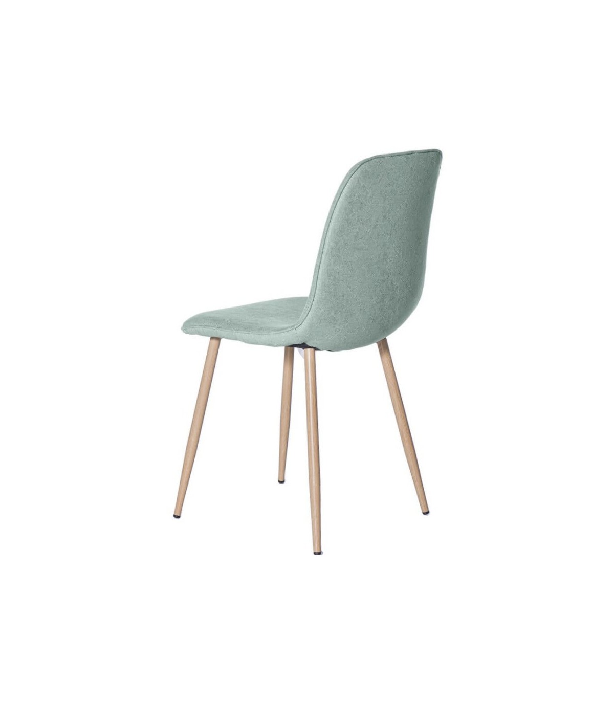 Silla de estructura metálica imitando madera natural tapizada en color menta. Resistente y robusta por la composición de sus materiales. Una silla ideal para ambientes nórdicos o contemporáneos.