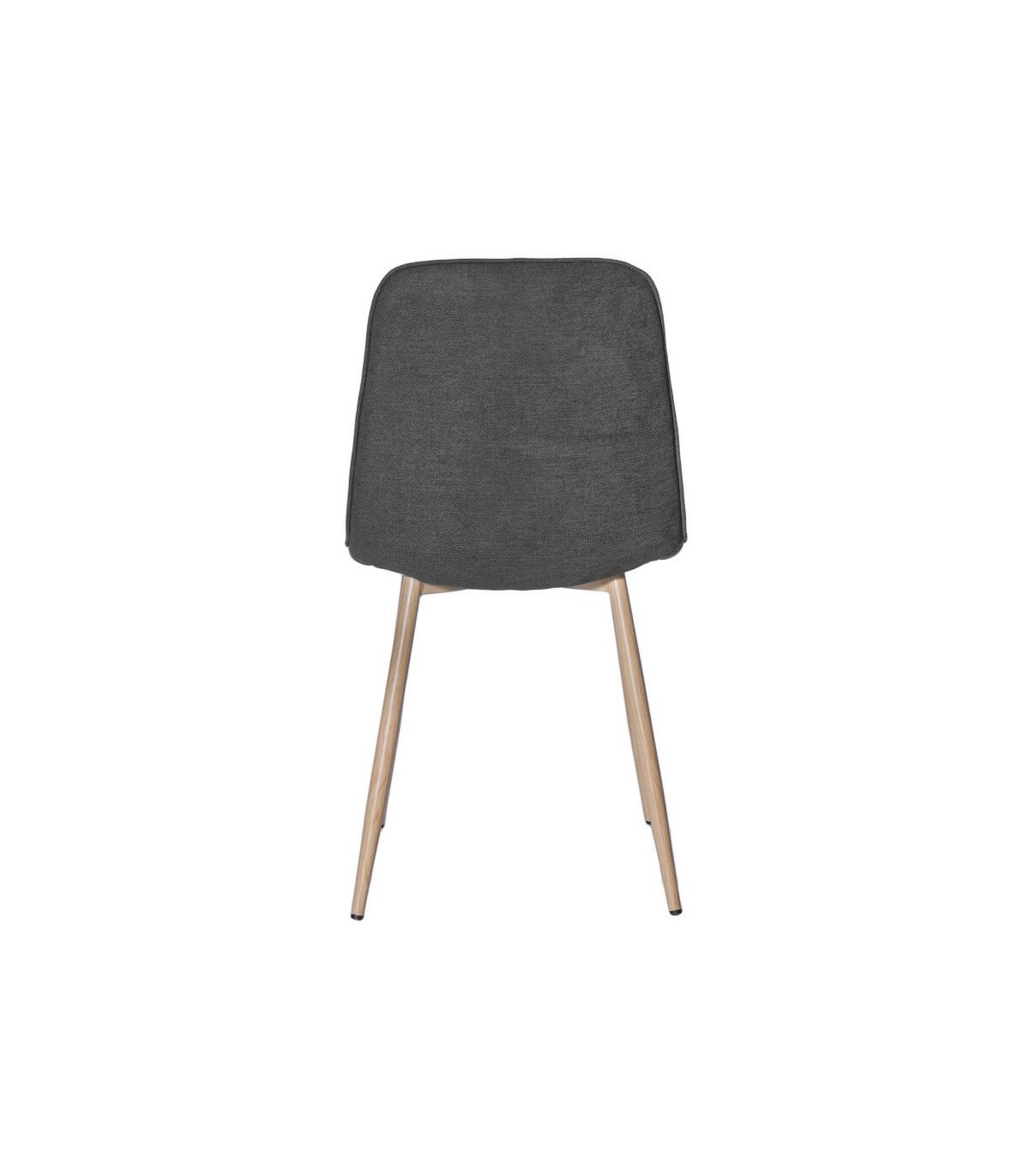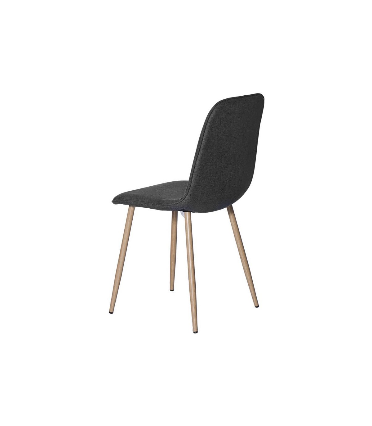 Silla de estructura metálica imitando madera natural tapizada en gris oscuro. Resistente y robusta por la composición de sus materiales. Una silla ideal para ambientes nórdicos o contemporáneos.