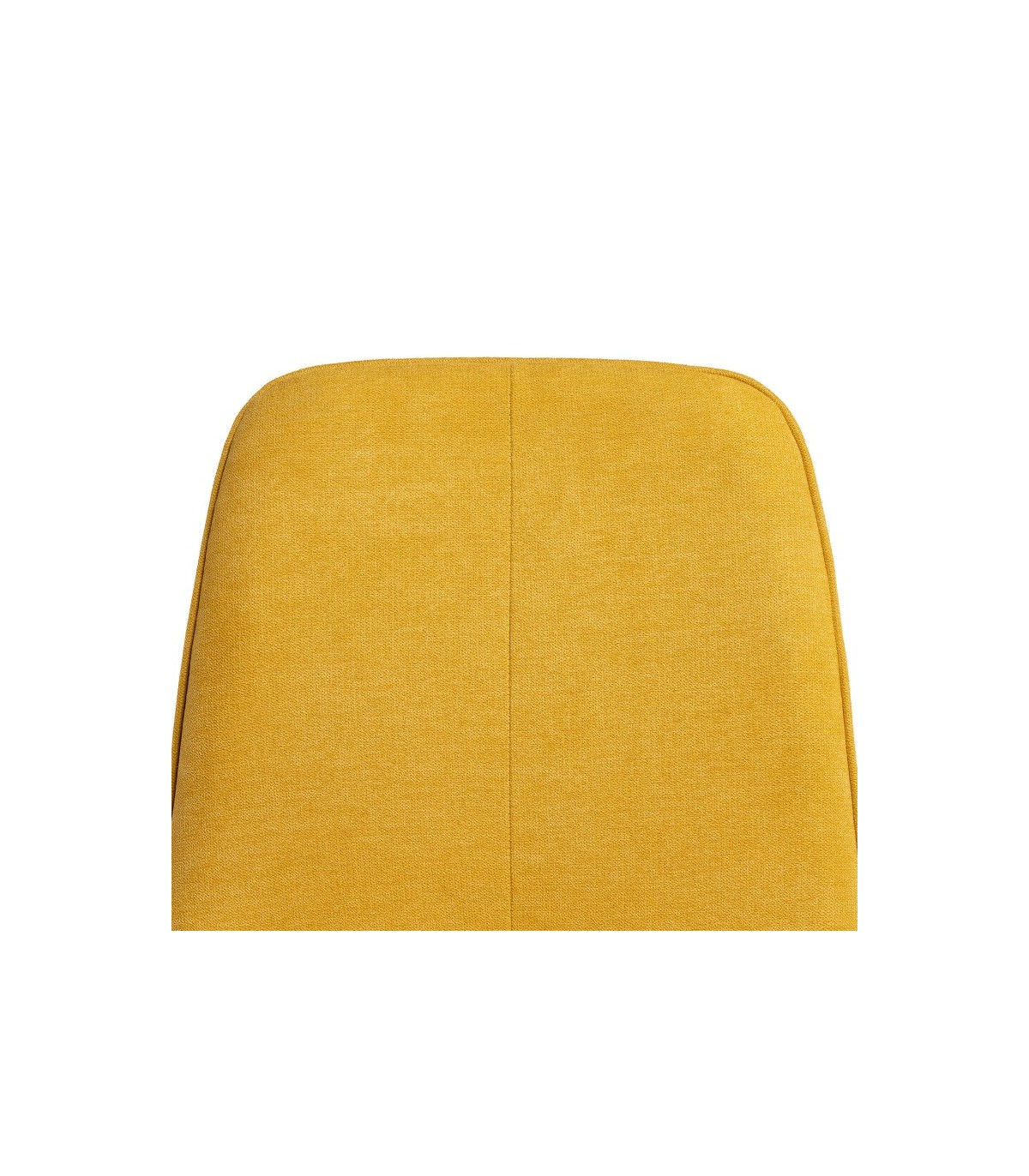 Su tapizado en tela color mostaza le da un toque muy desenfadado.