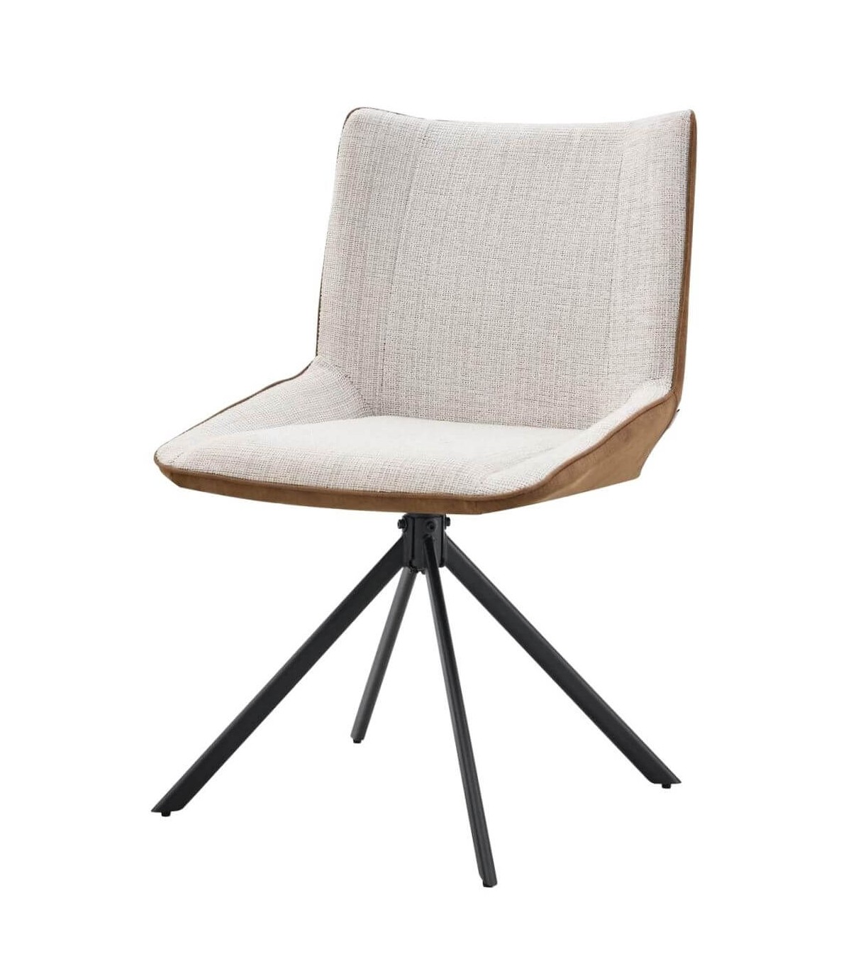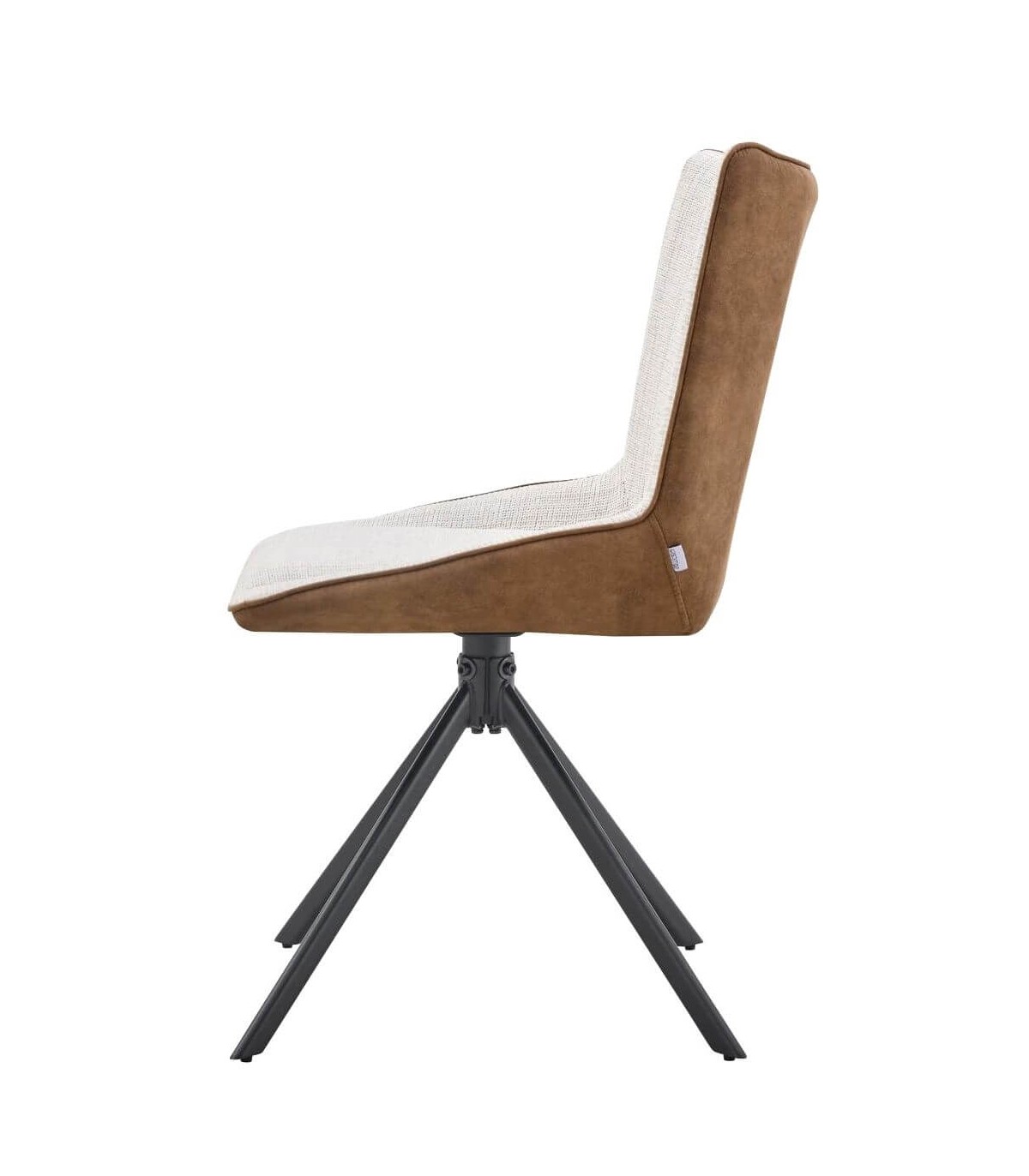 Silla tapizada asiento y respaldo tela bora acabado beige, trasera tela suede ocre, las patas están realizadas en hierro para otorgar una mayor sujeción. Es una silla perfecta para colocar en cualquier estancia de la vivienda o de la oficina al tener un diseño elegante y natural.