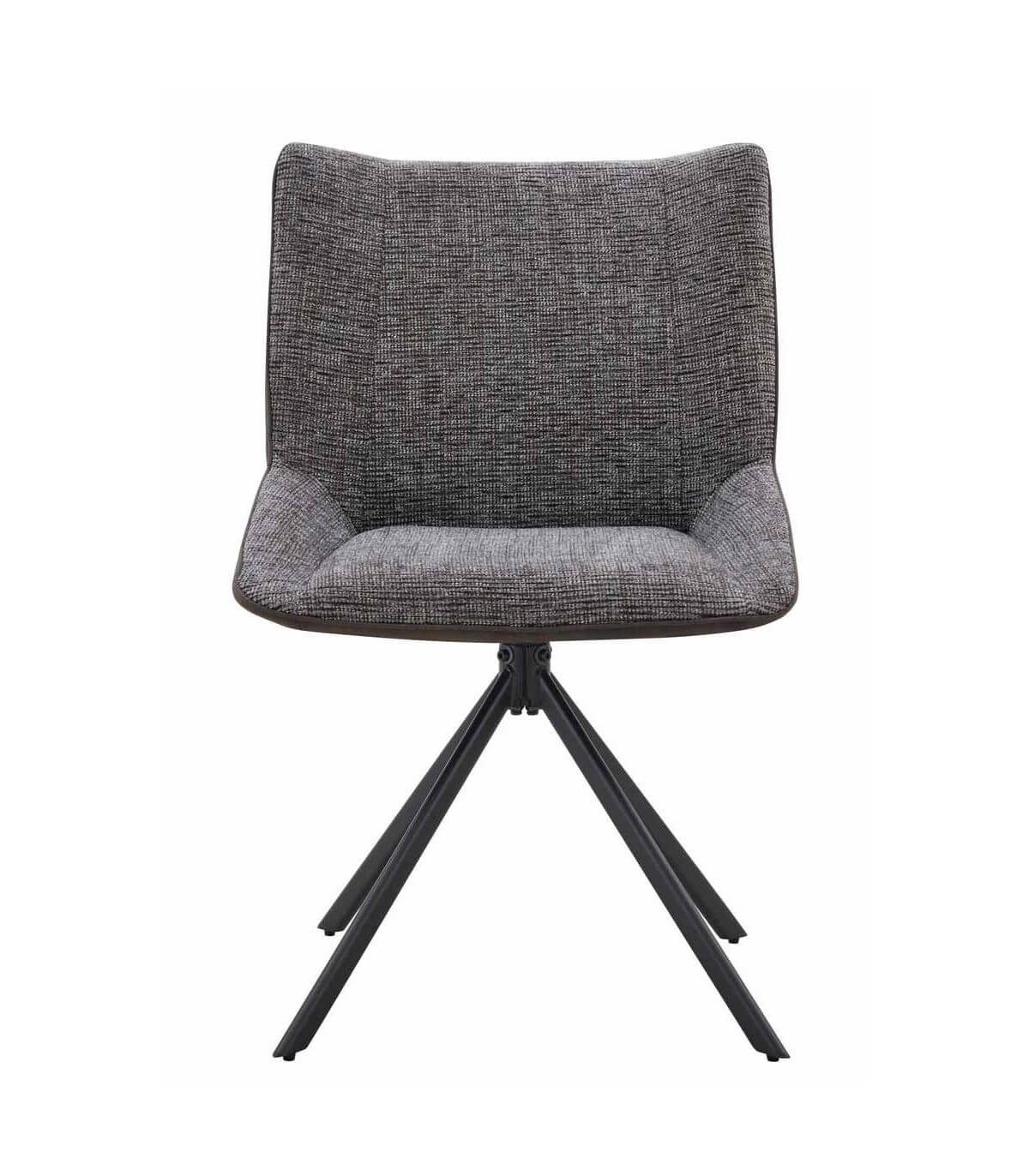 Silla tapizada asiento y respaldo tela bora acabado gris, trasera tela suede marrón, las patas están realizadas en hierro para otorgar una mayor sujeción. Es una silla perfecta para colocar en cualquier estancia de la vivienda o de la oficina al tener un diseño elegante y natural.