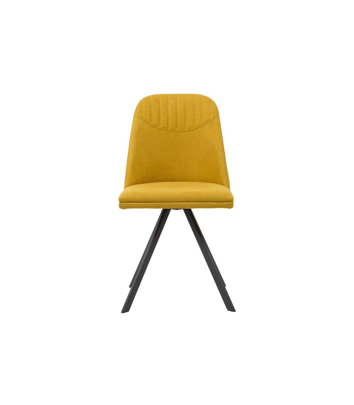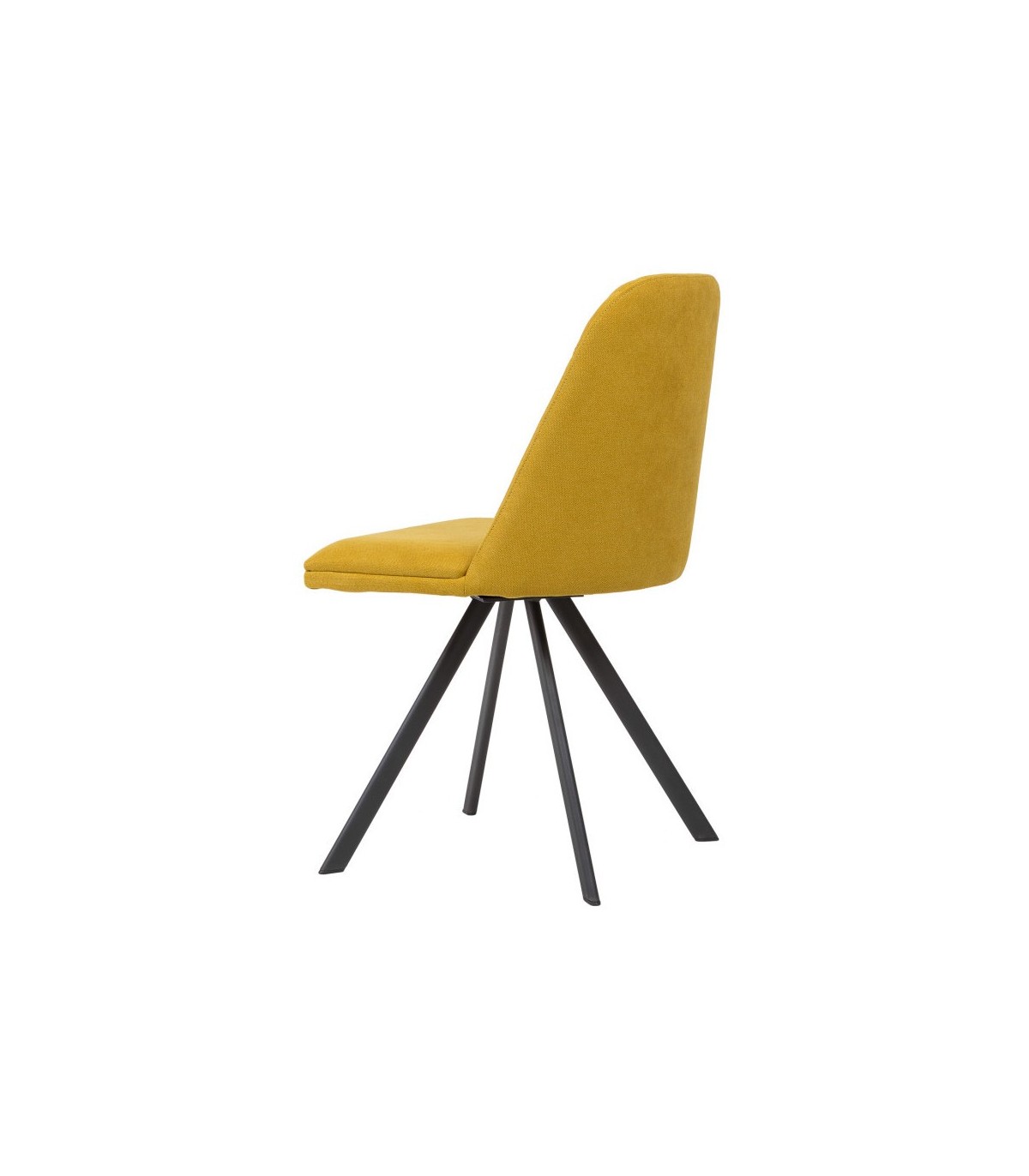Silla de diseño actual muy funcional. Es una silla fabricada con estructura y patas metal, acabado mate. Tapizada en tela color mostaza.