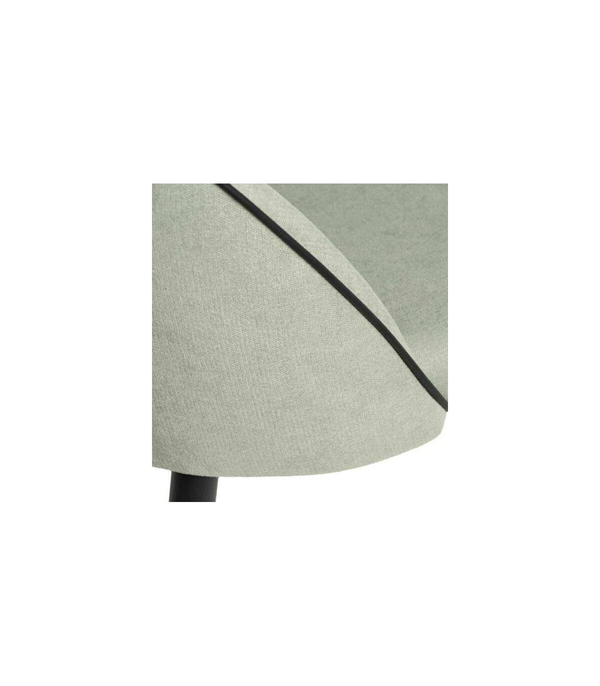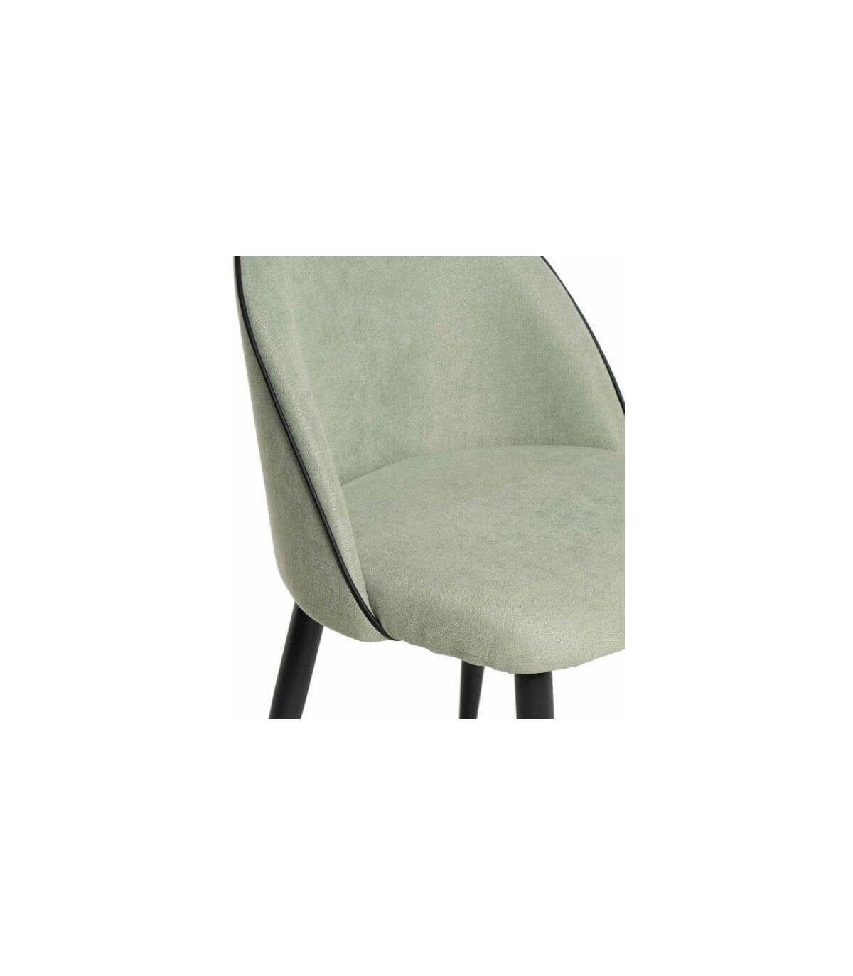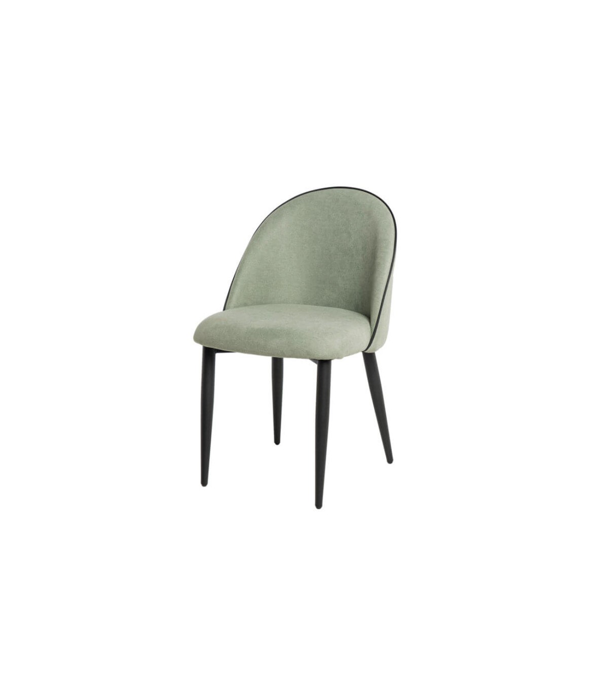 Silla de estructura metálica color negro tapizada en color verde menta con un vivo en polipiel negra que le aporta mucho movimiento. Resistente y robusta por la composición de sus materiales. Una silla ideal para ambientes nórdicos o contemporáneos.
