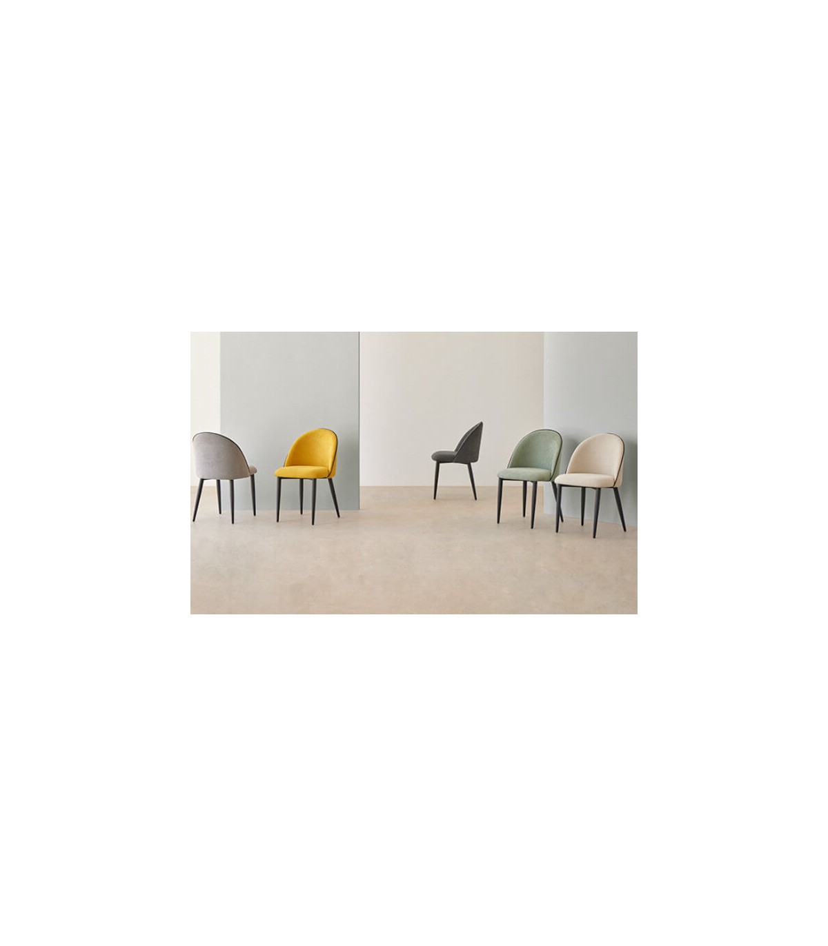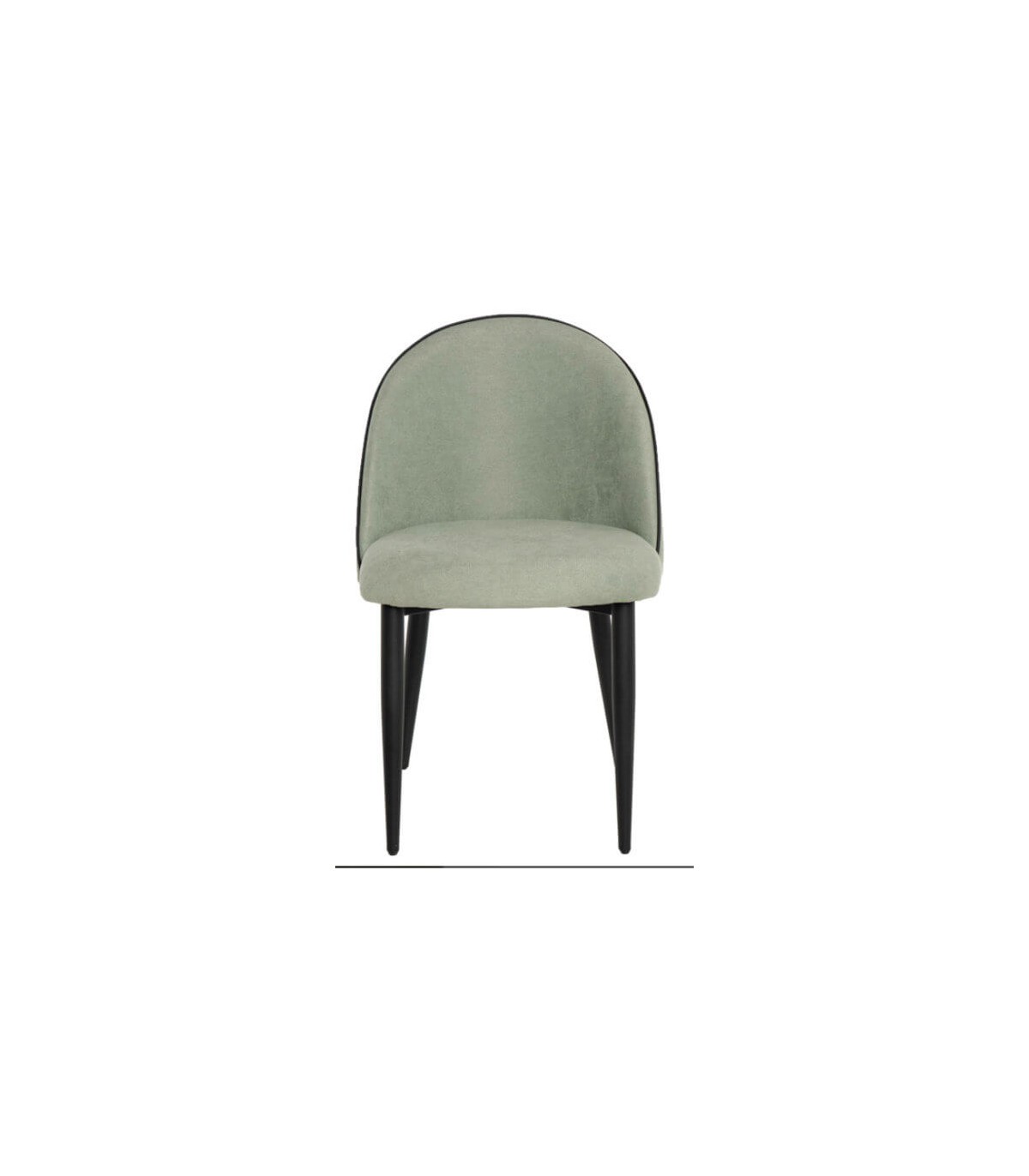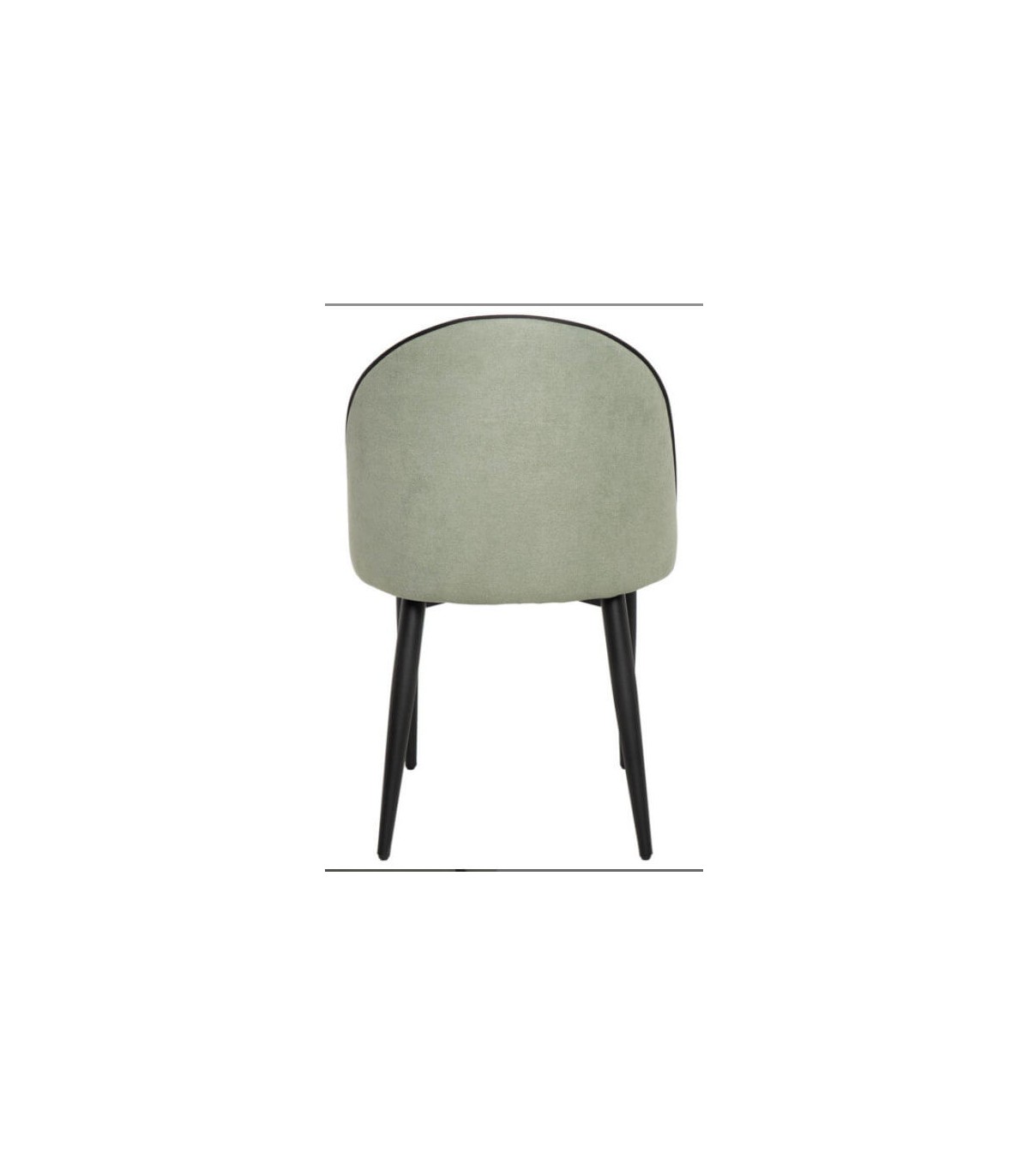 Silla de estructura metálica color negro tapizada en color verde menta con un vivo en polipiel negra que le aporta mucho movimiento. Resistente y robusta por la composición de sus materiales. Una silla ideal para ambientes nórdicos o contemporáneos.