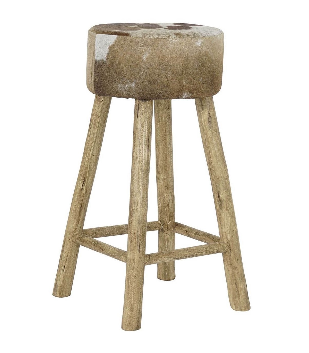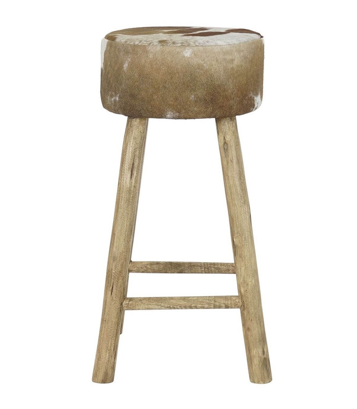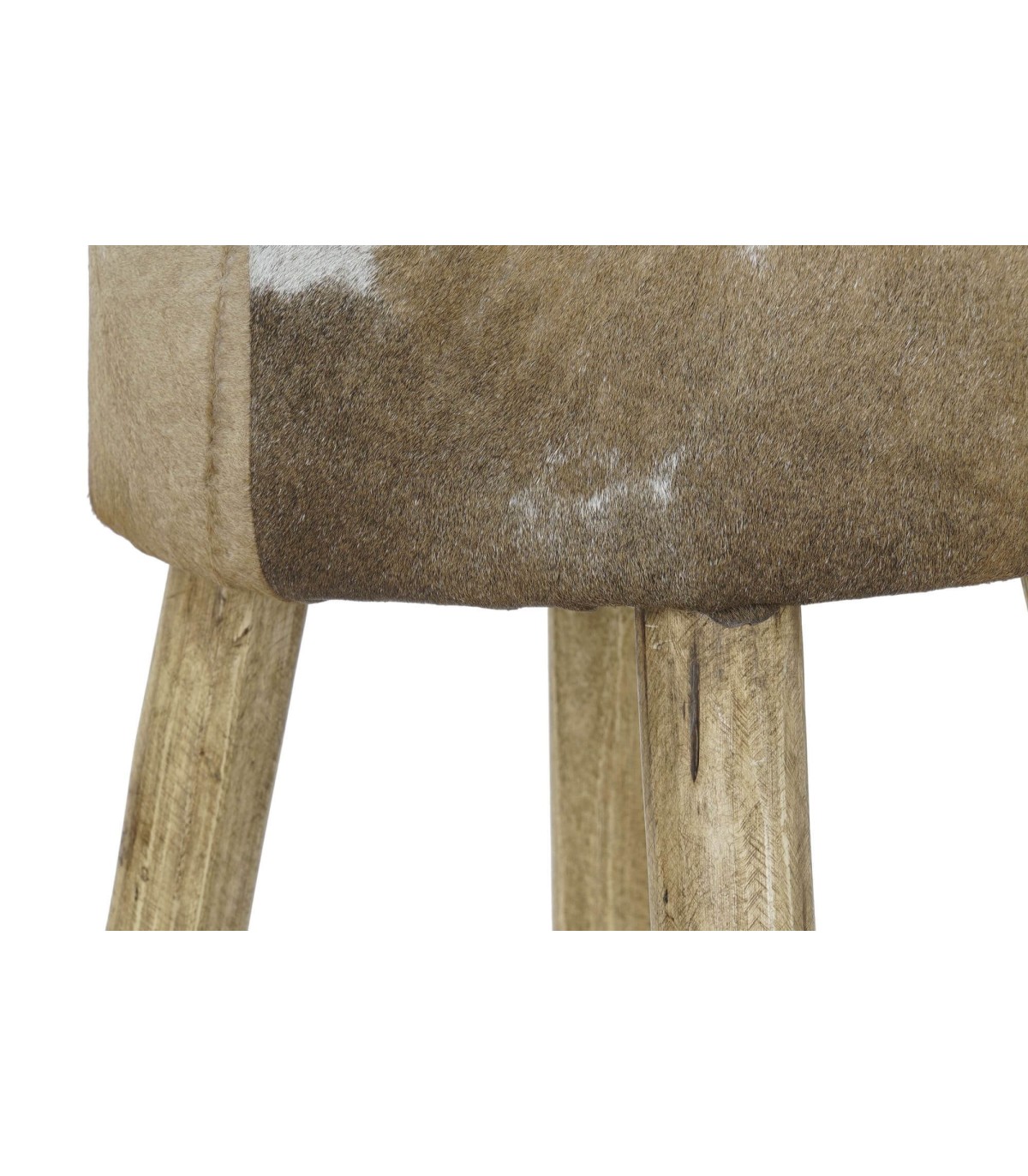 Taburete sencillo y elegante, destacar el tapizado en piel de vacuno y la madera natural que combinan perfectamente.