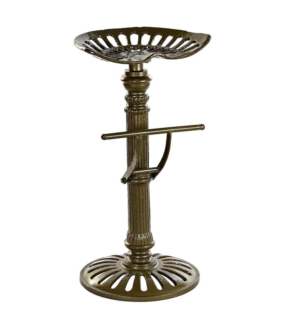 Taburete con mucha presencia, un clásico de los años 40, cómodo con su reposa pies ajustable y muy robusto al ser toda la estructura en hierro forjado.