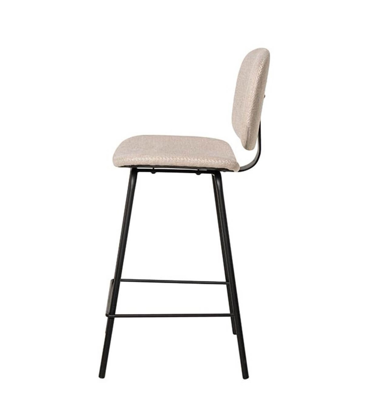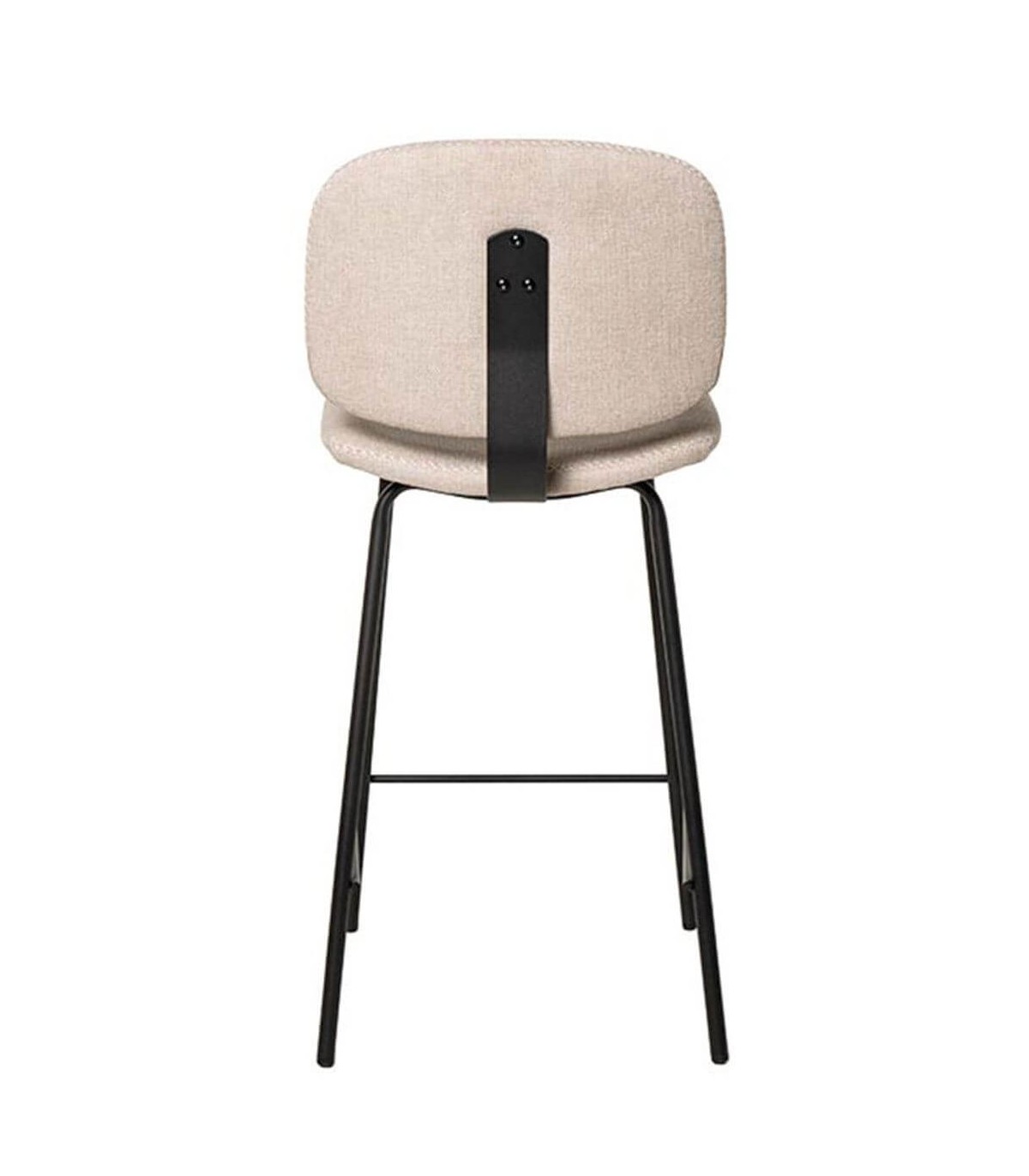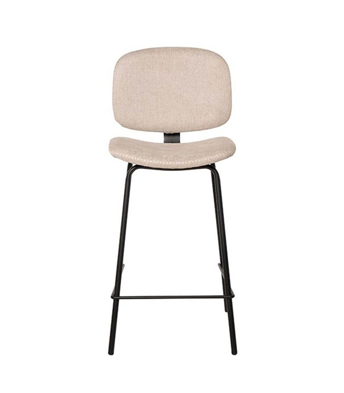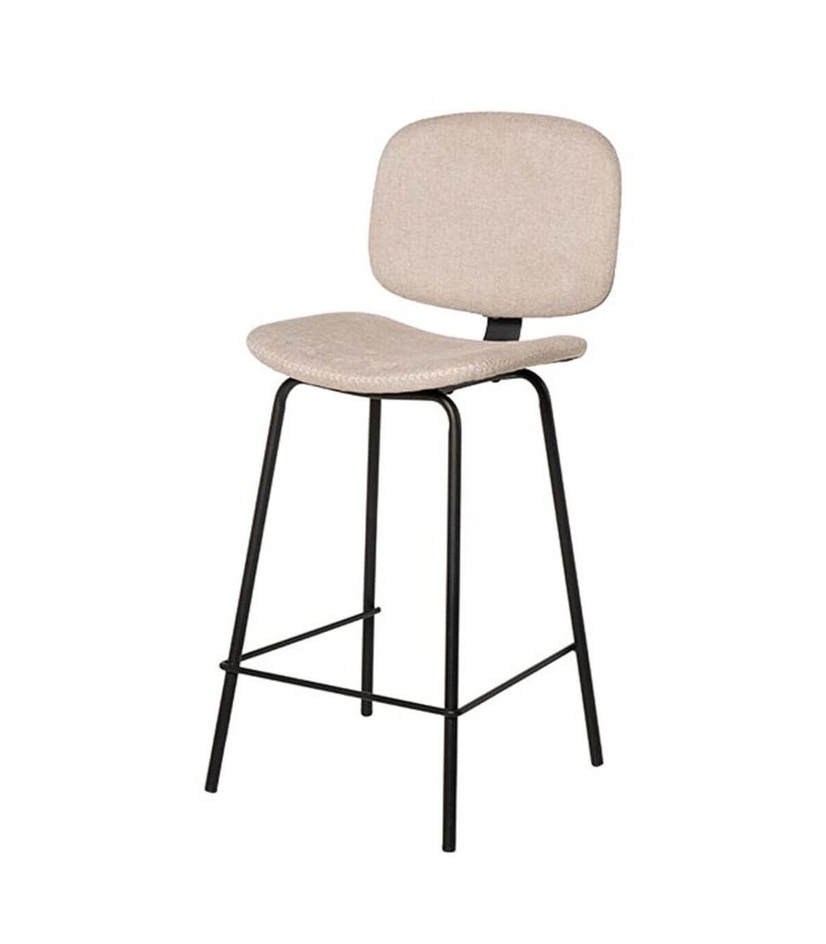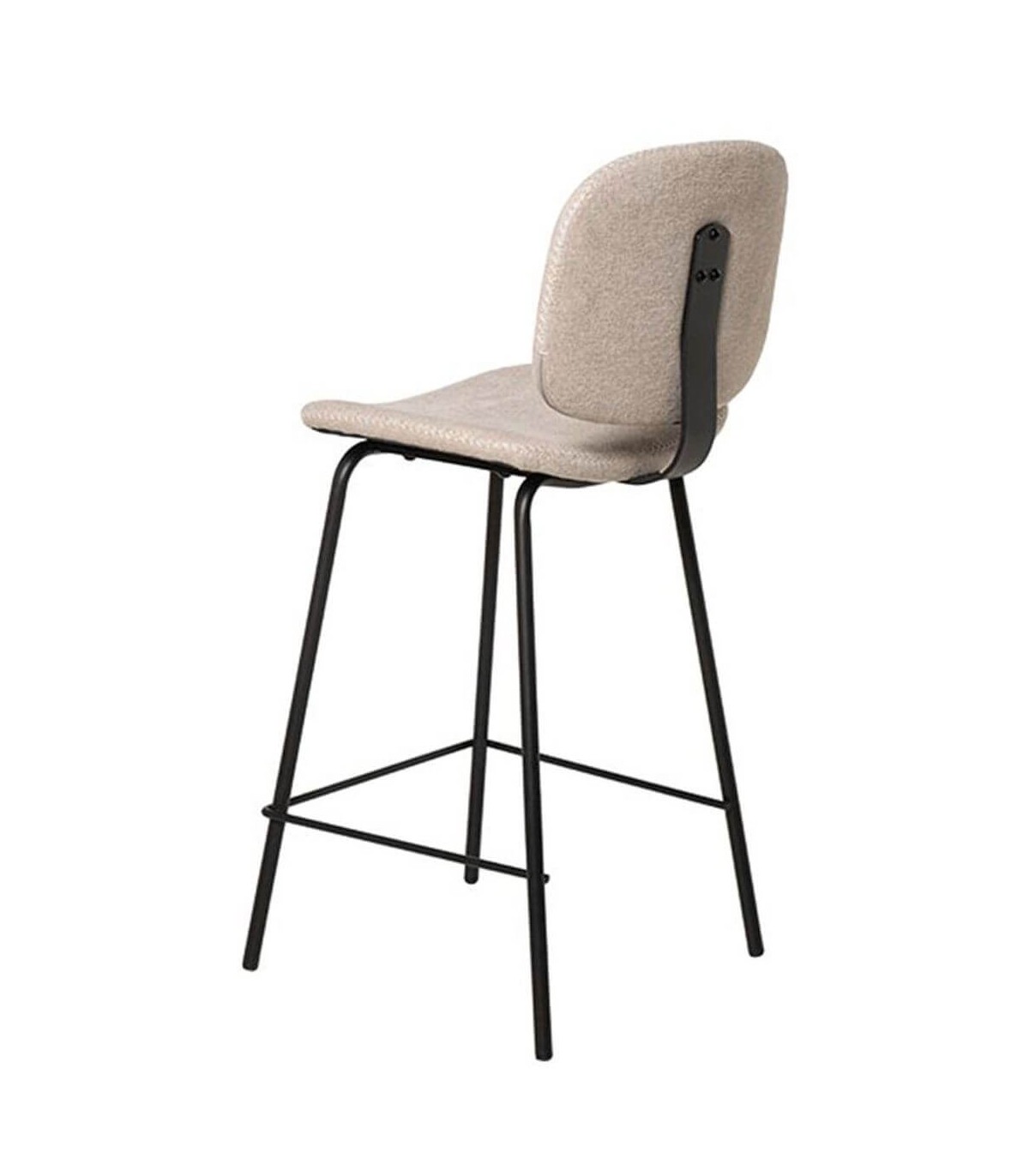 El diseño limpio de este taburete combina la suavidad de la chenilla beige con la firmeza estructural del metal negro, creando una pieza equilibrada y versátil. Su asiento ergonómico y respaldo curvado garantizan comodidad, adaptándose con elegancia a cocinas, barras o espacios de reunión modernos.