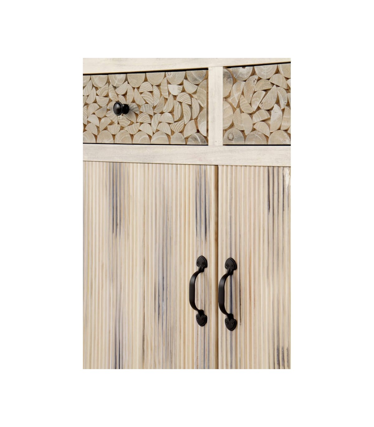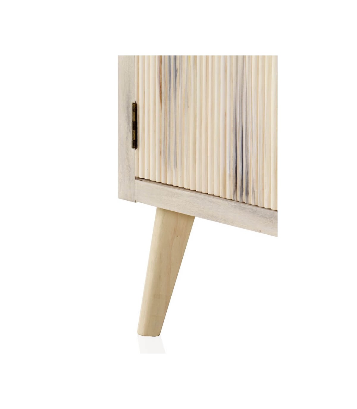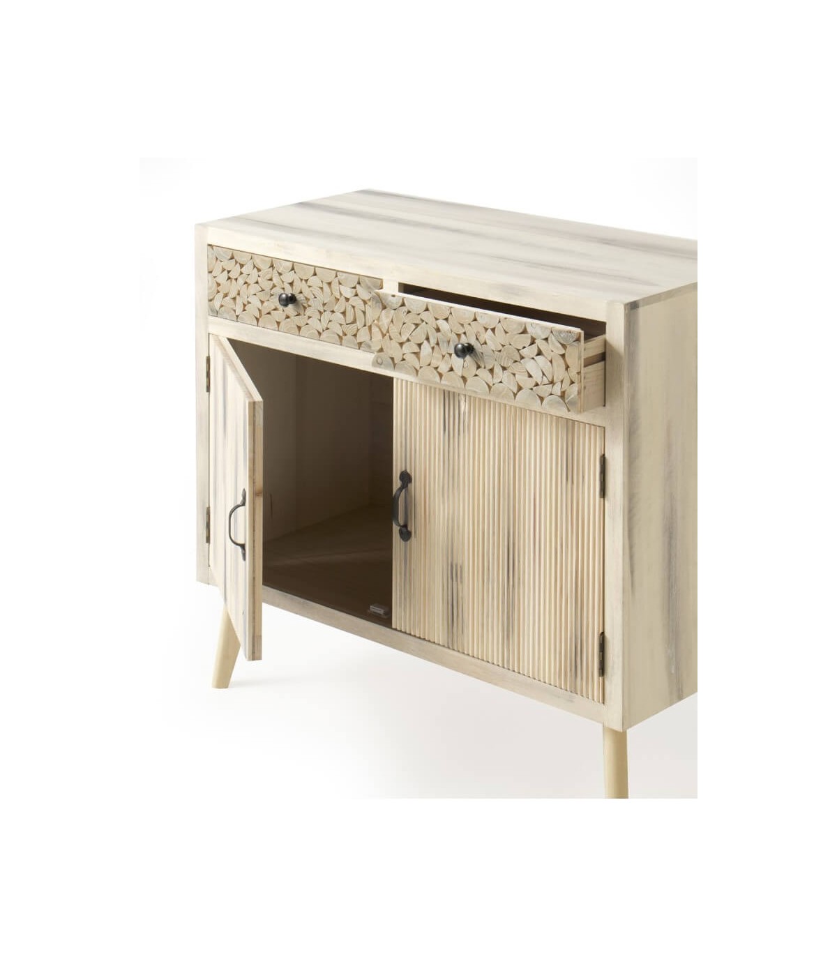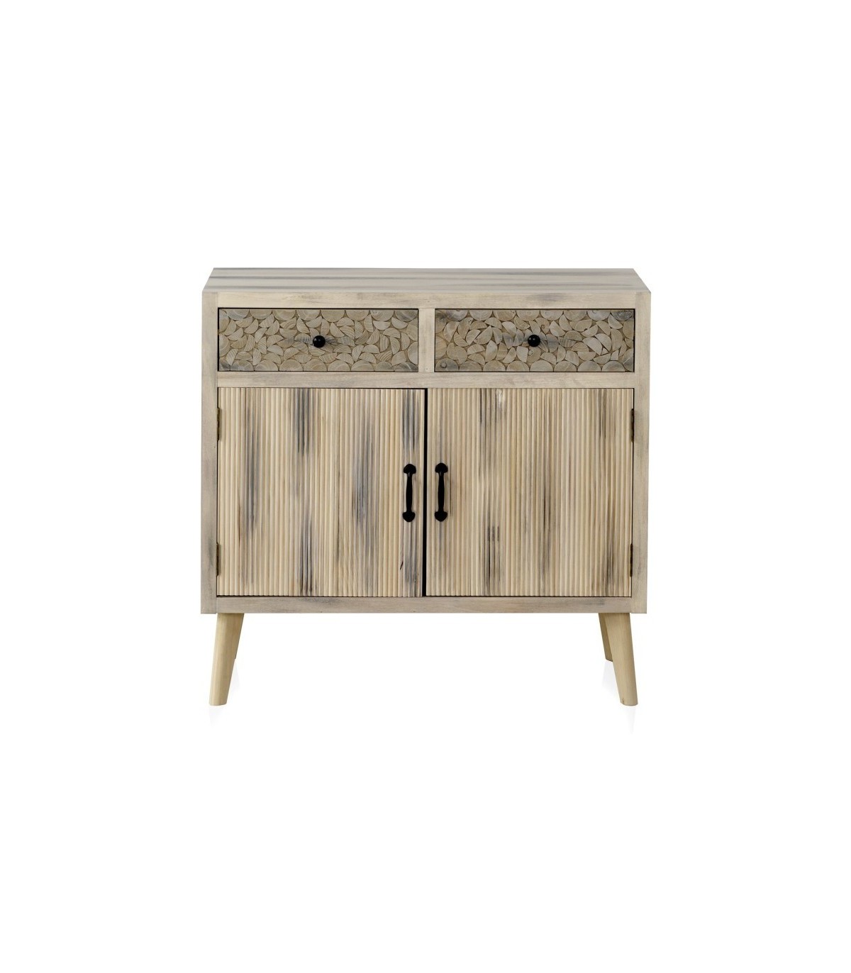 Acabado, artesanal, madera de álamo natural y tiradores en metal color negro.