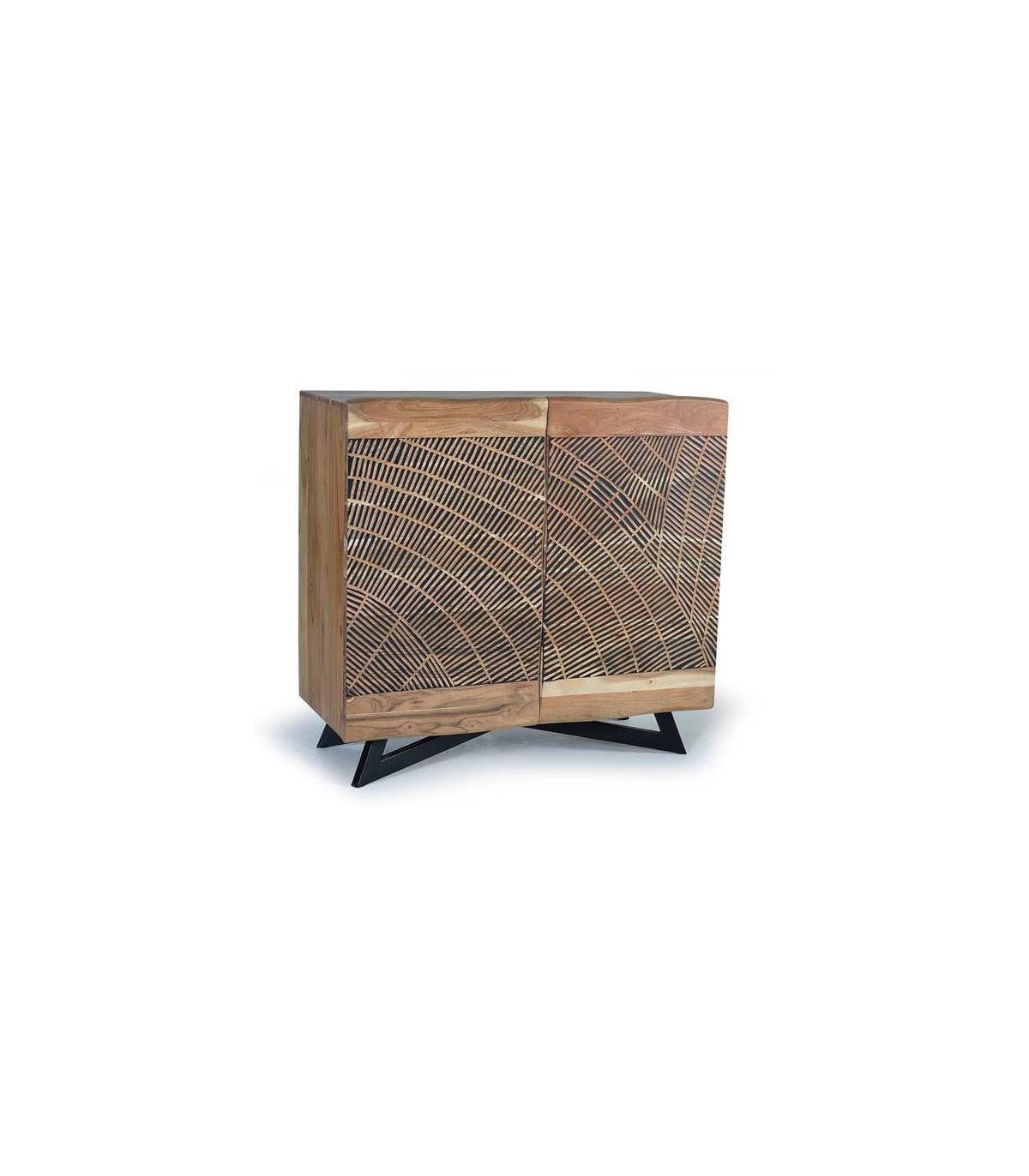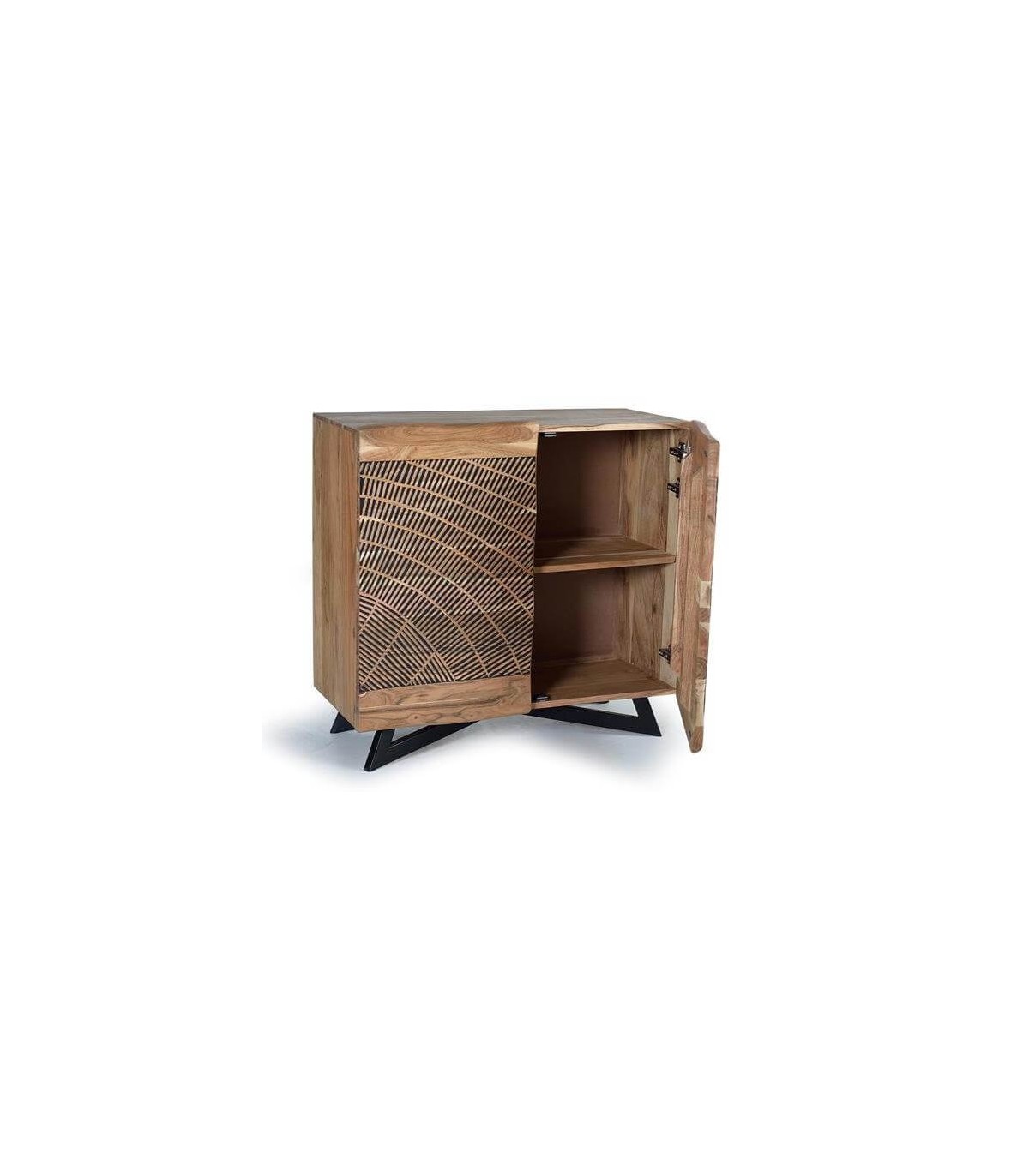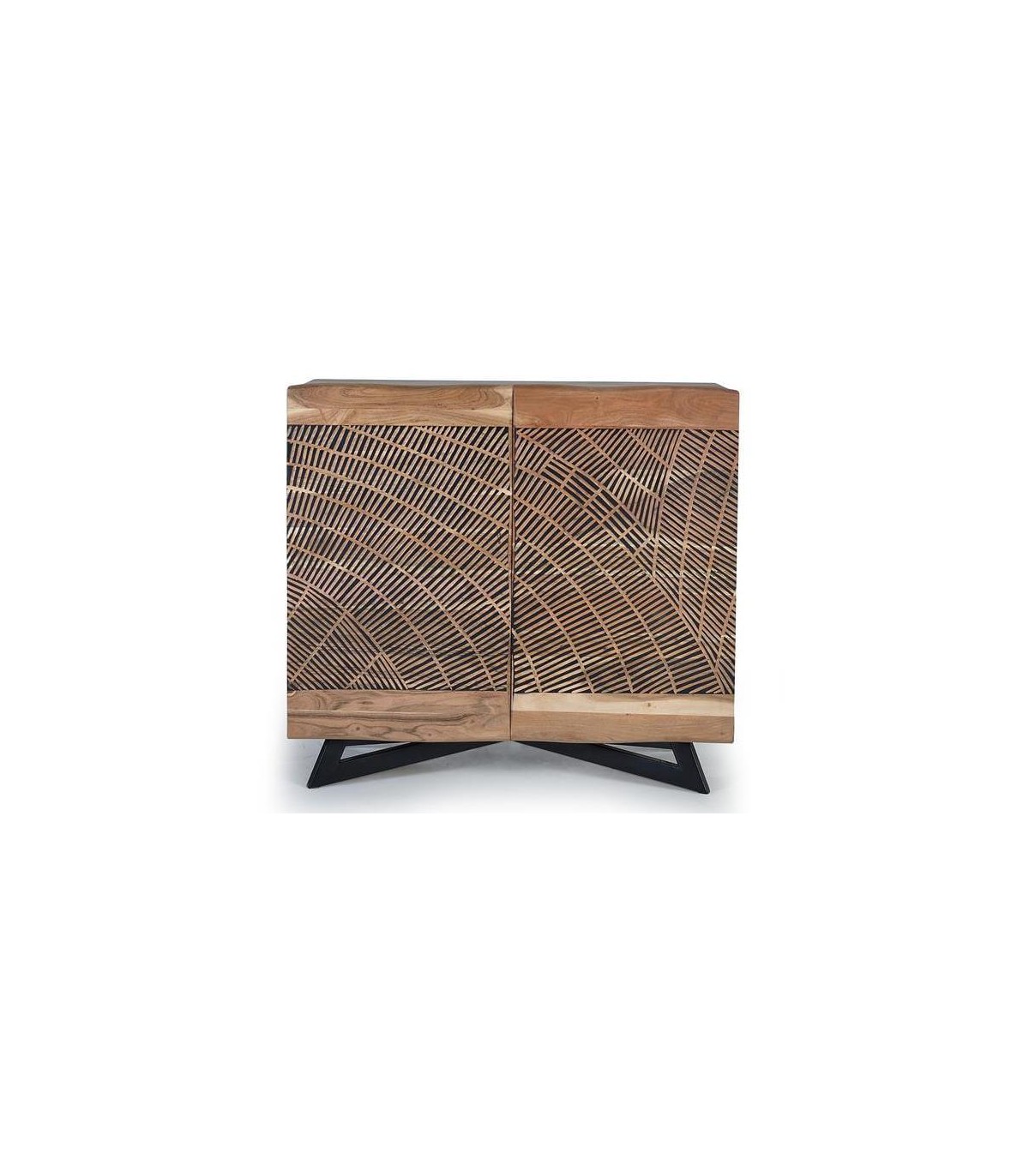 • Acabado, madera de acacia tallada y patas en metal negro.