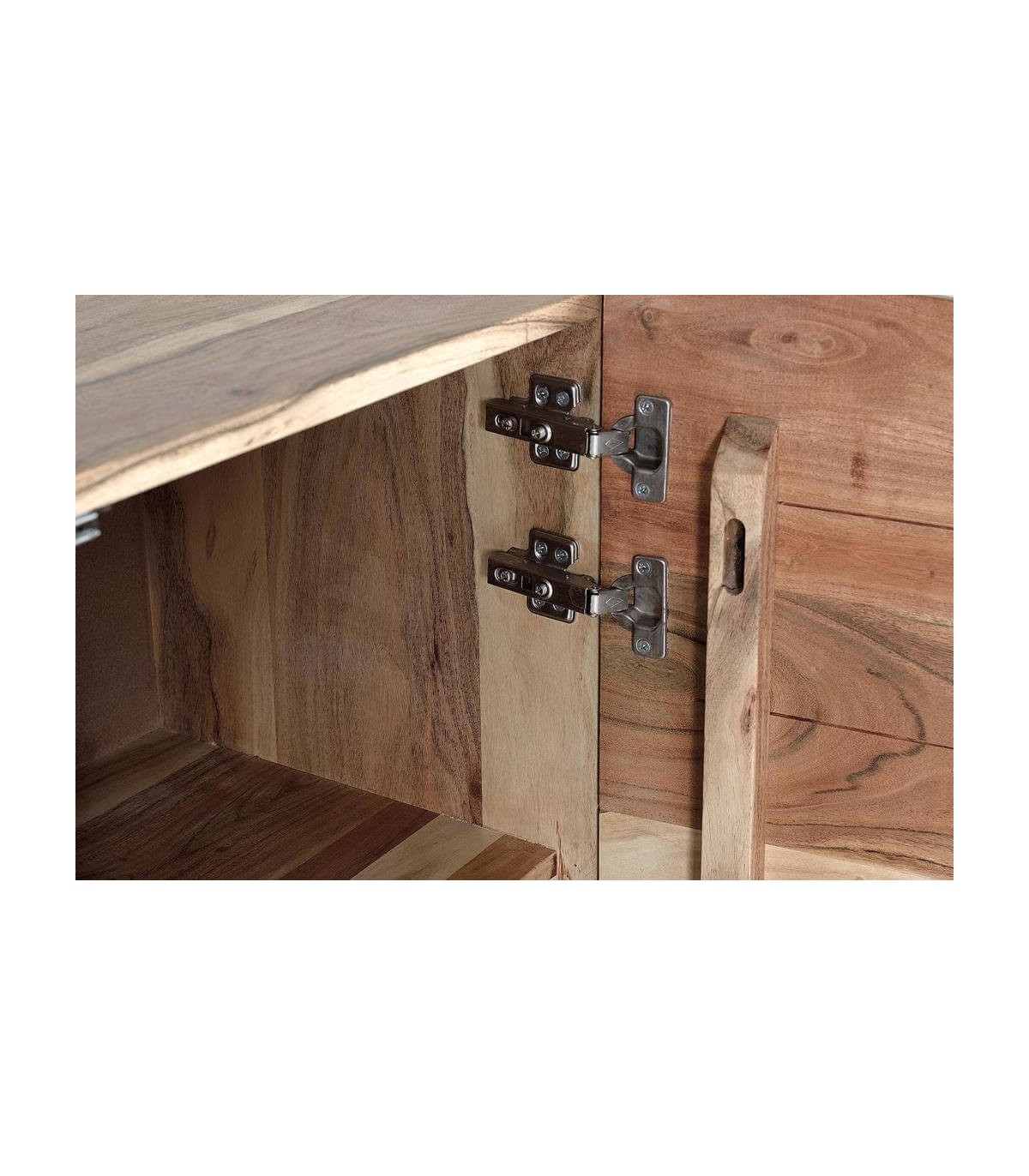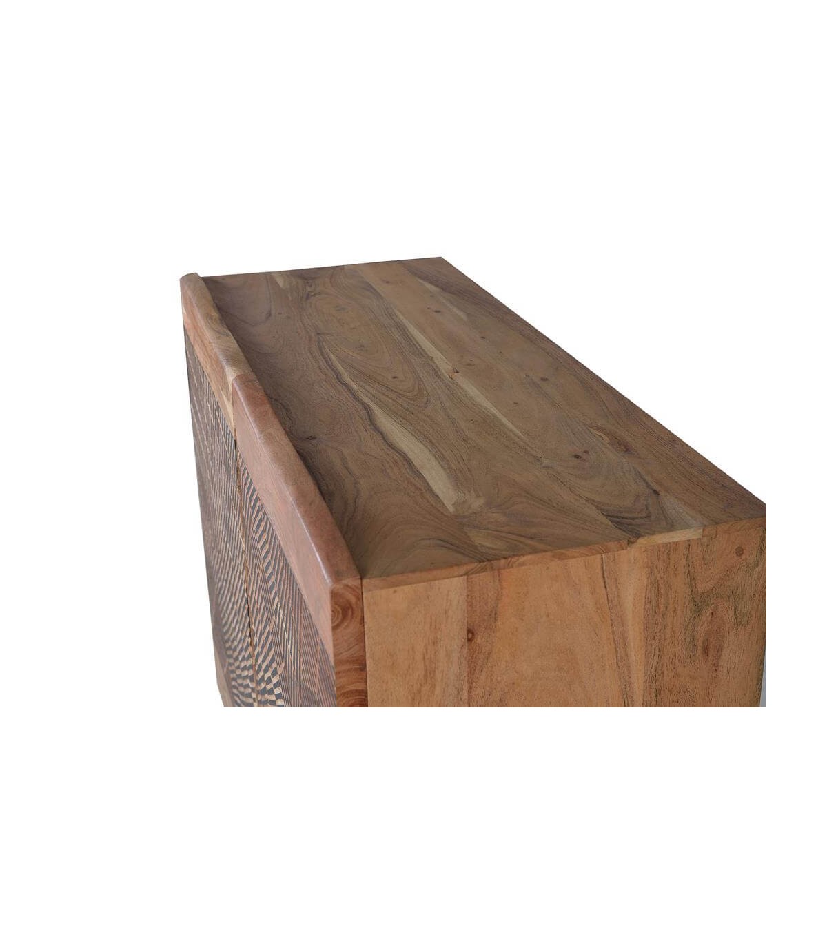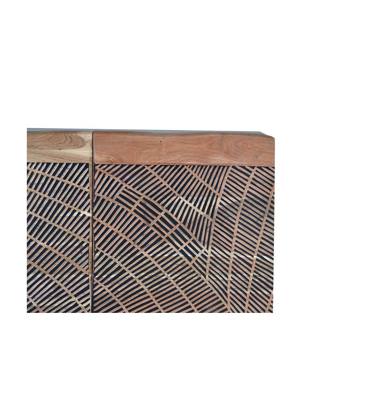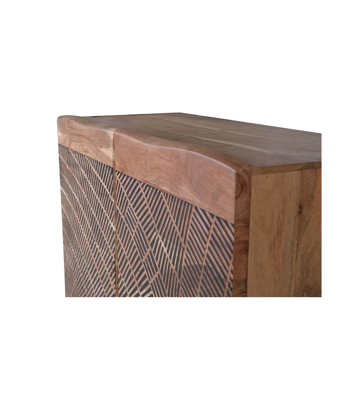 • Acabado, madera de acacia tallada y patas en metal negro.