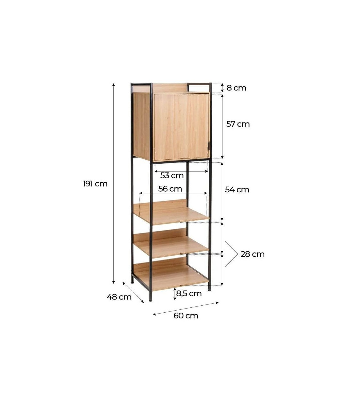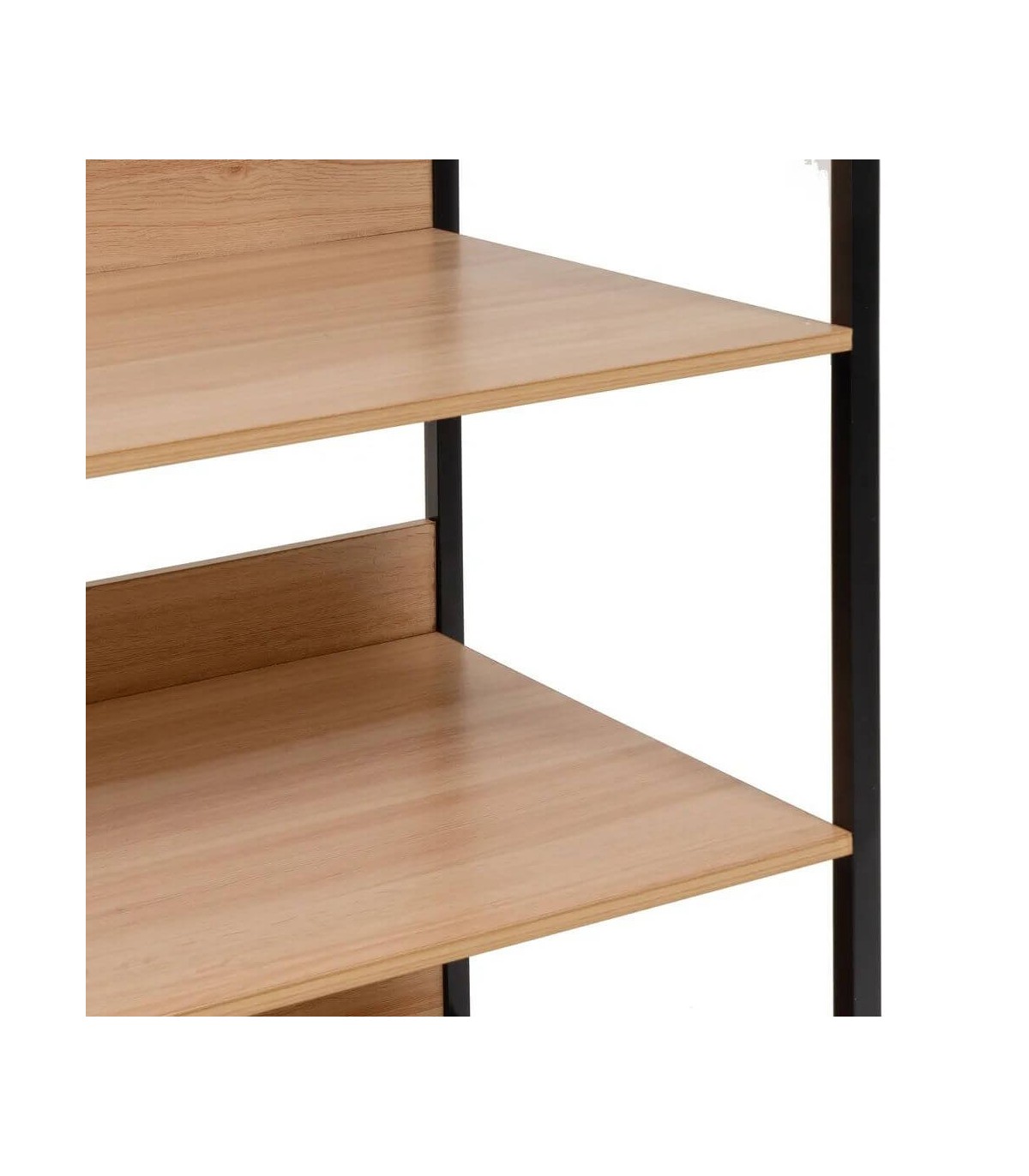 - Acabado, madera imitación haya natural, metal negro.