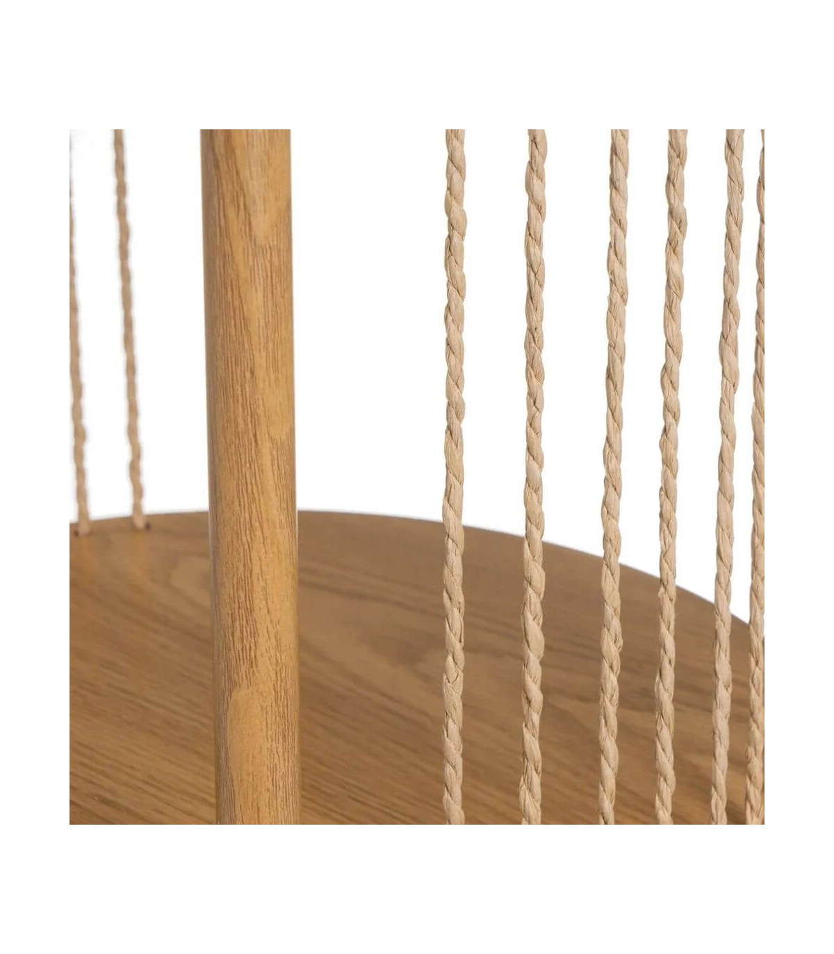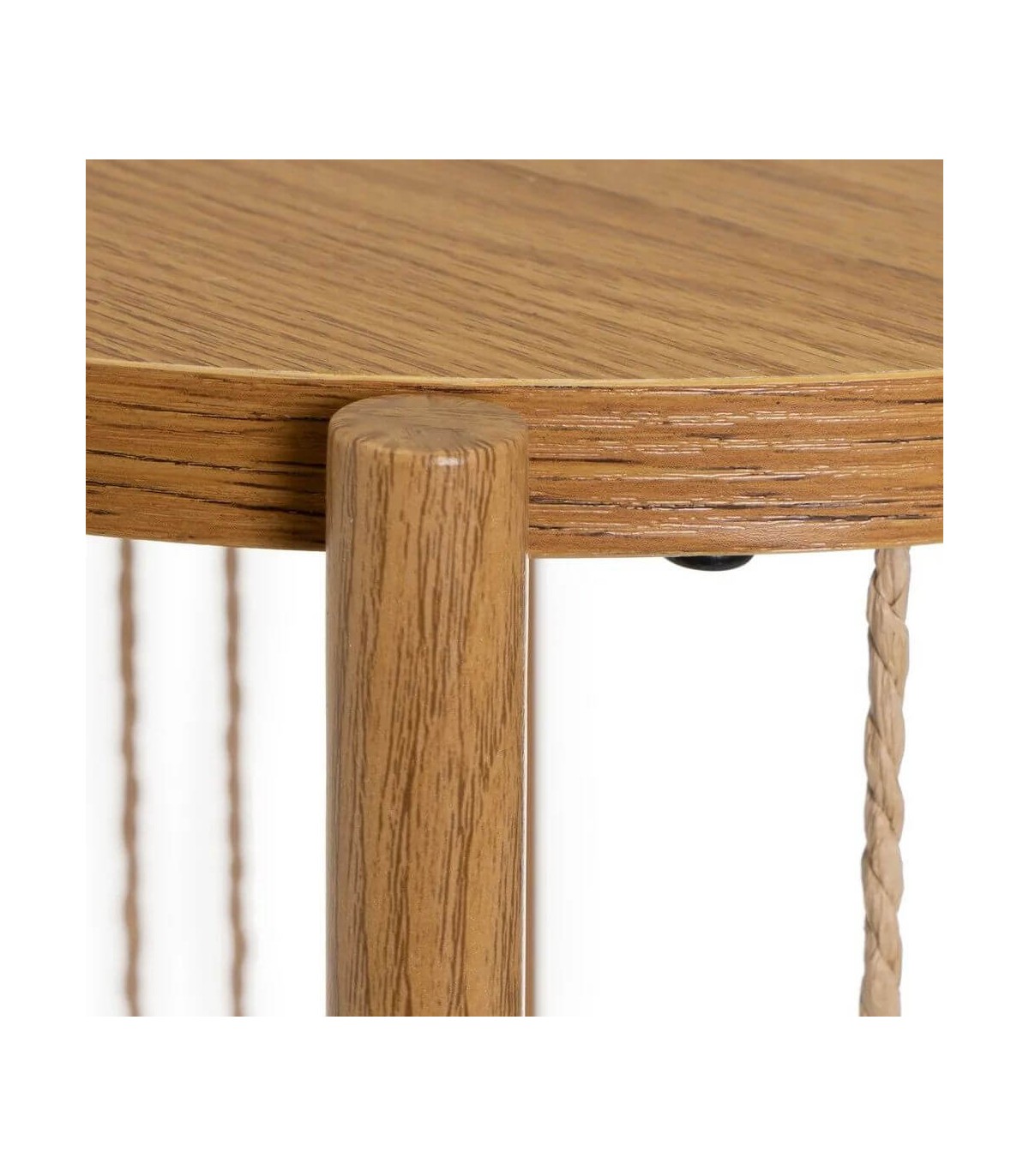 • Acabado, madera mdf imitación roble natural, metal y cuerda a juego.