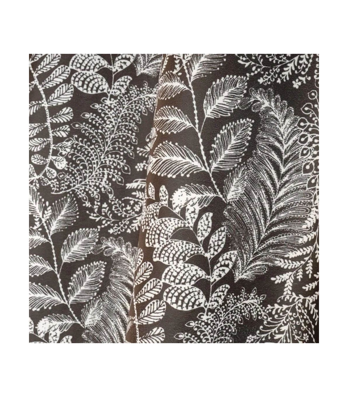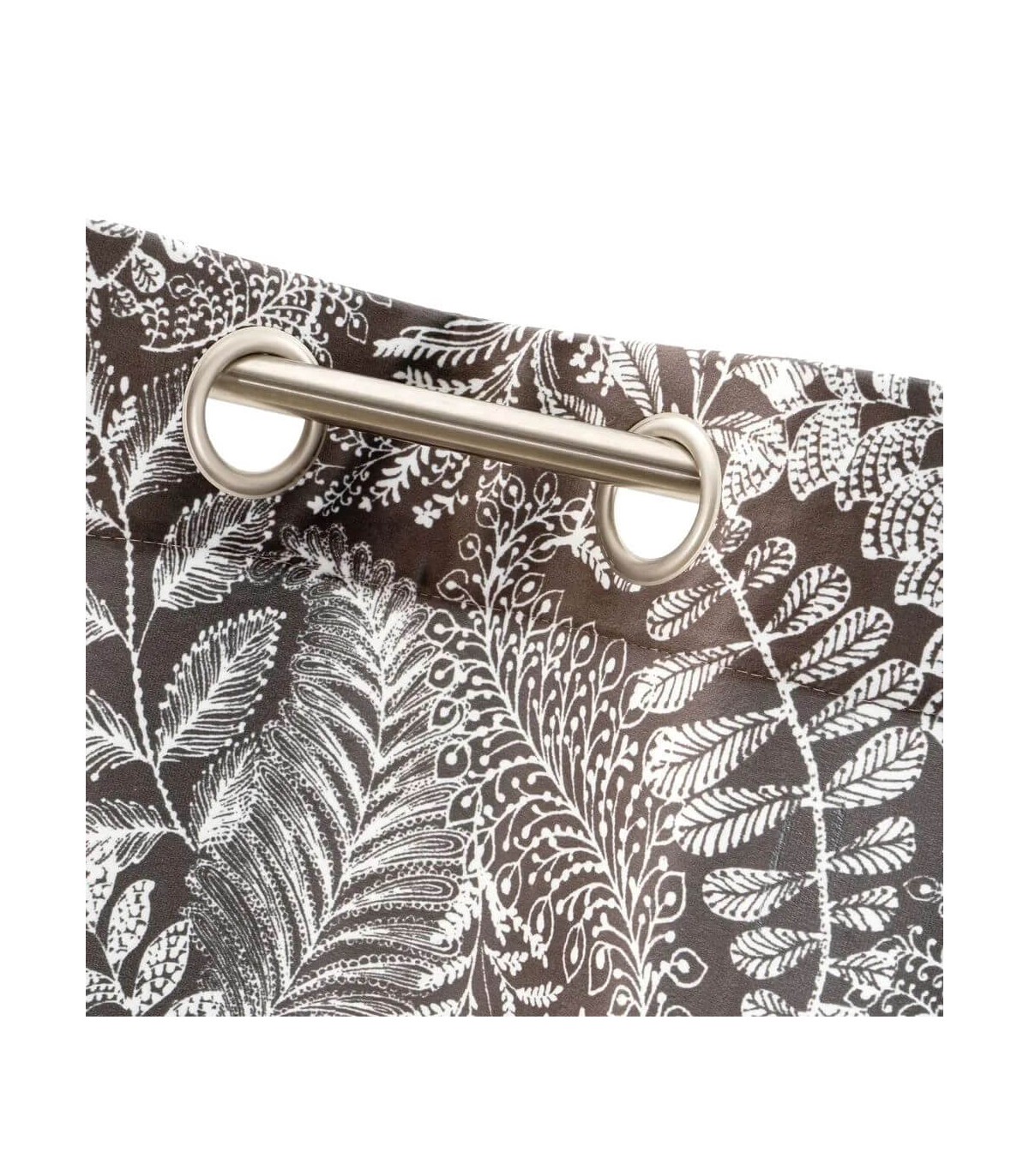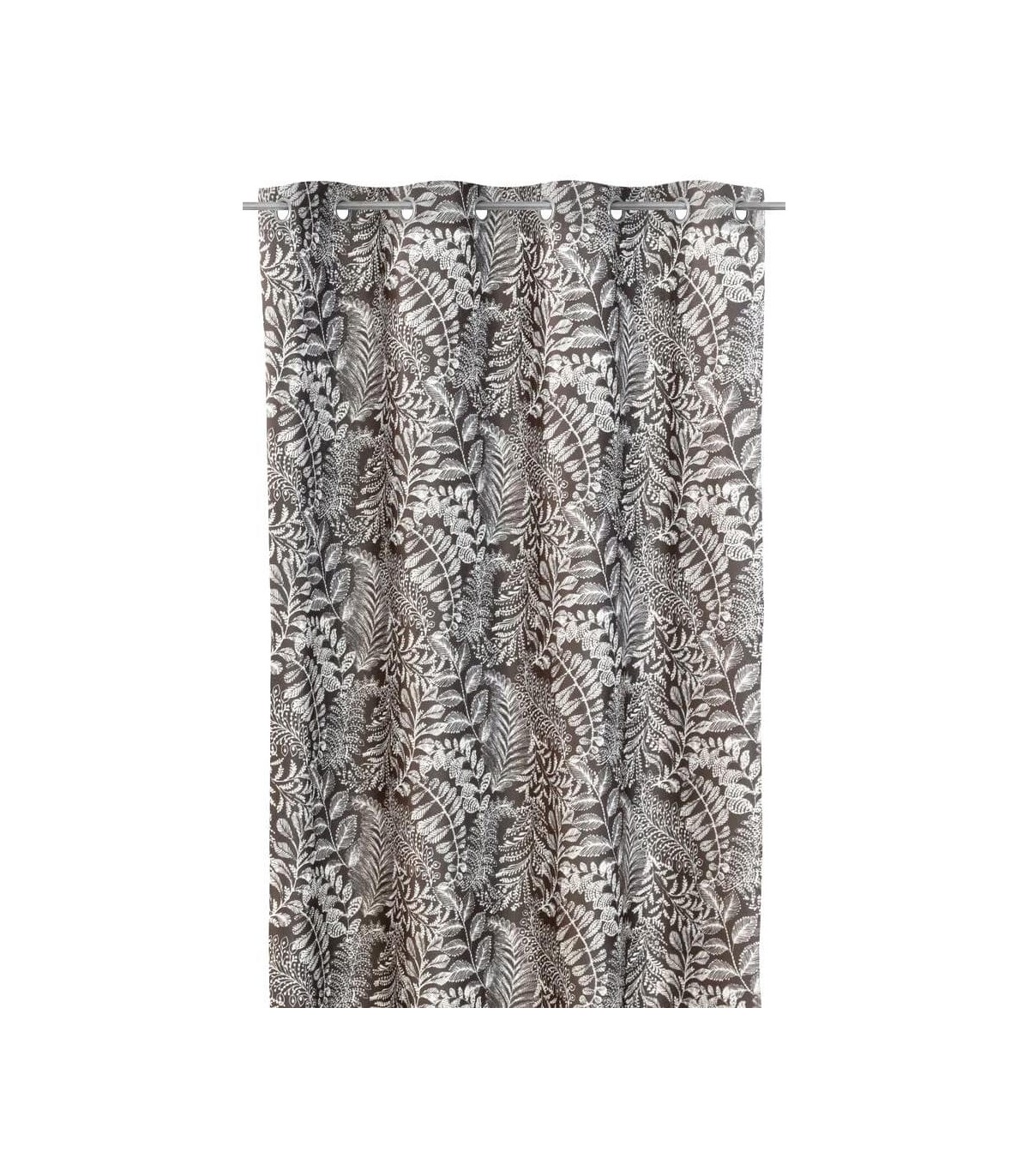 Cortina para colgar con barra opaca, terciopelo impreso con motivo estampado color blanco y marrón, una cortina con mucho carácter.