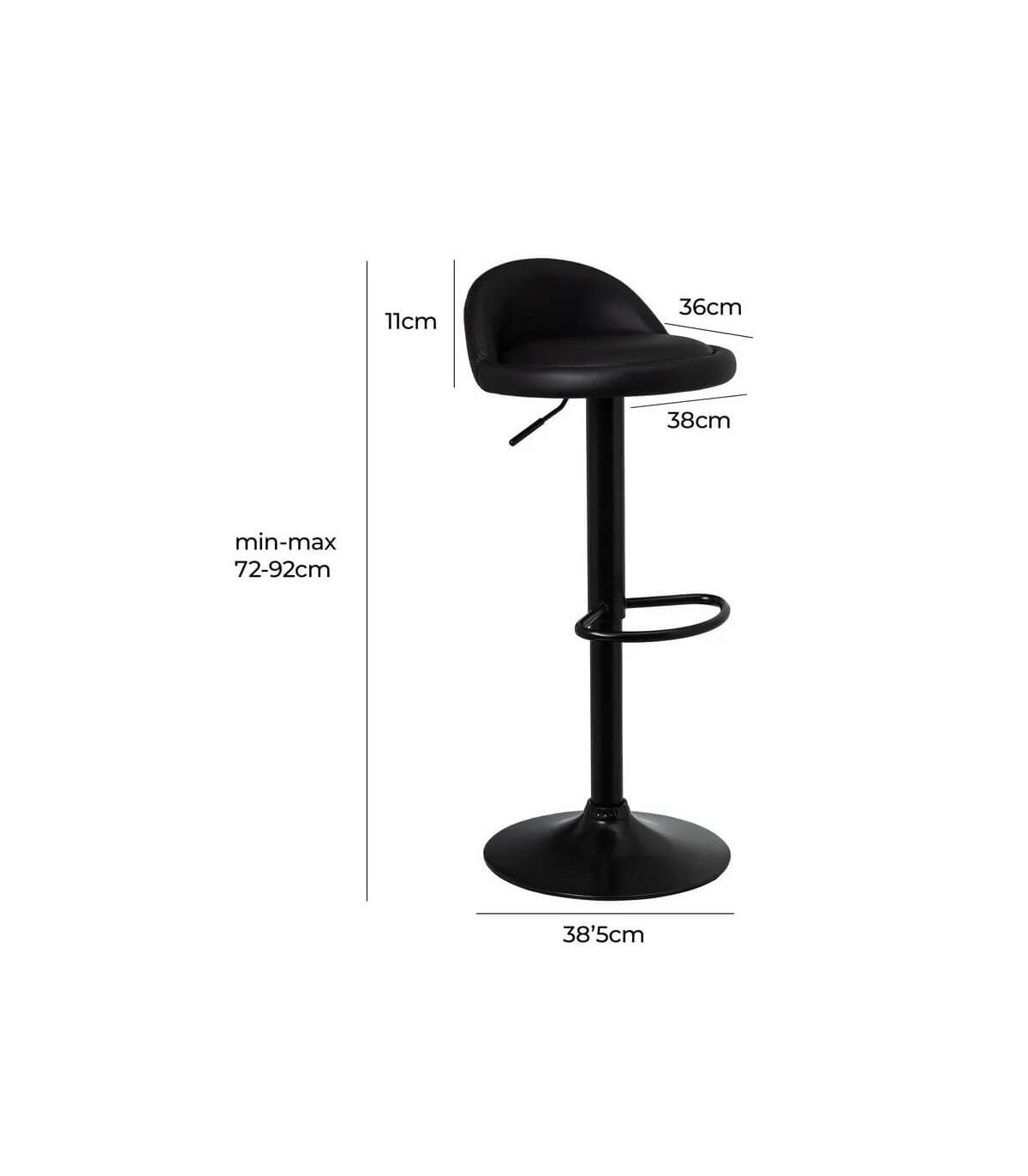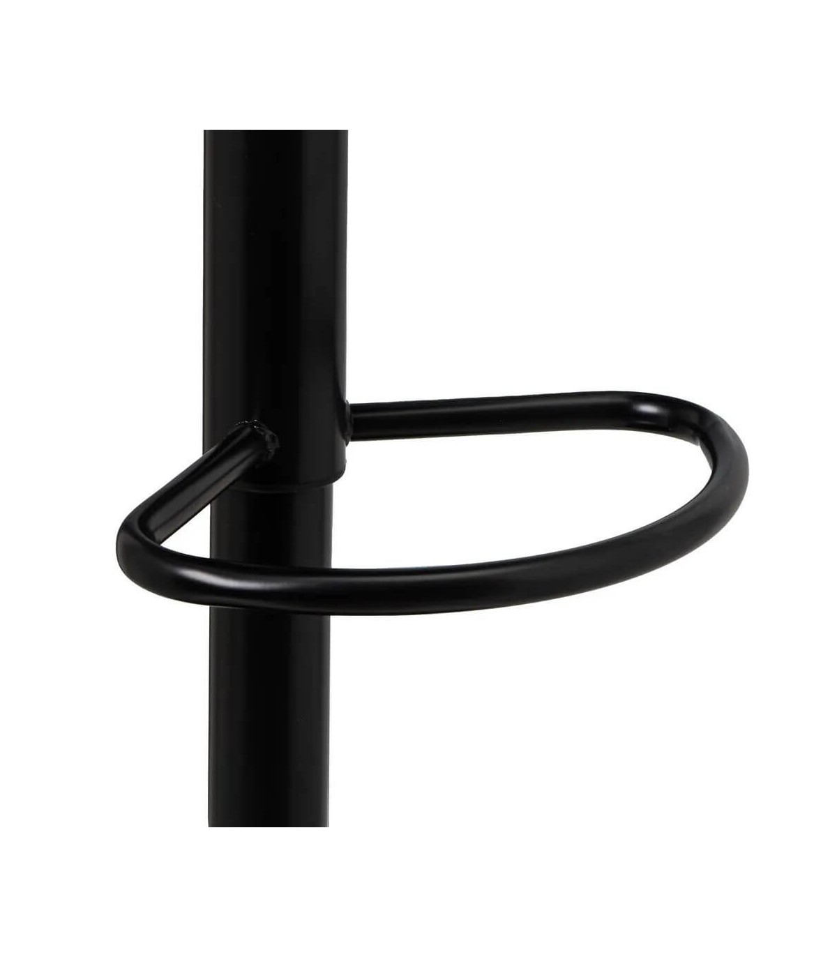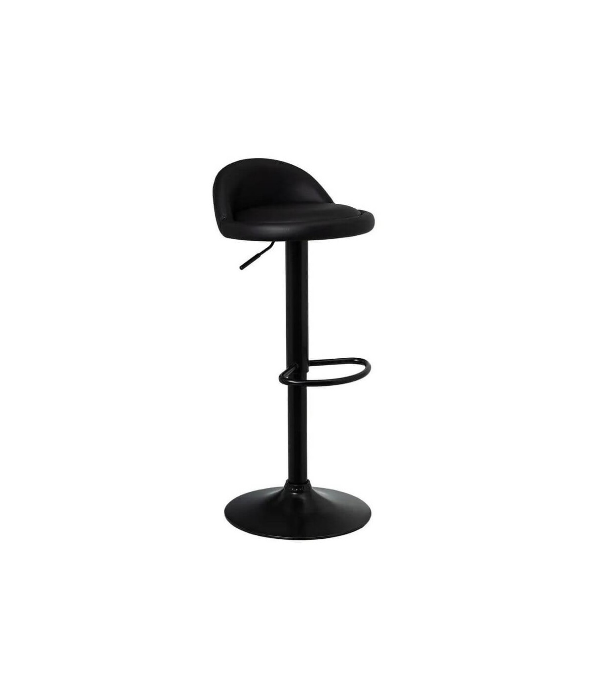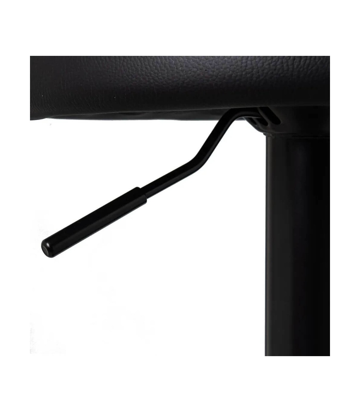 Taburete para barra regulable en altura y giratorio de estilo contemporáneo, realizado en metal negro y polipiel negra, práctico, sencillo y muy cómodo, encaja en cualquier estilo de decoración.