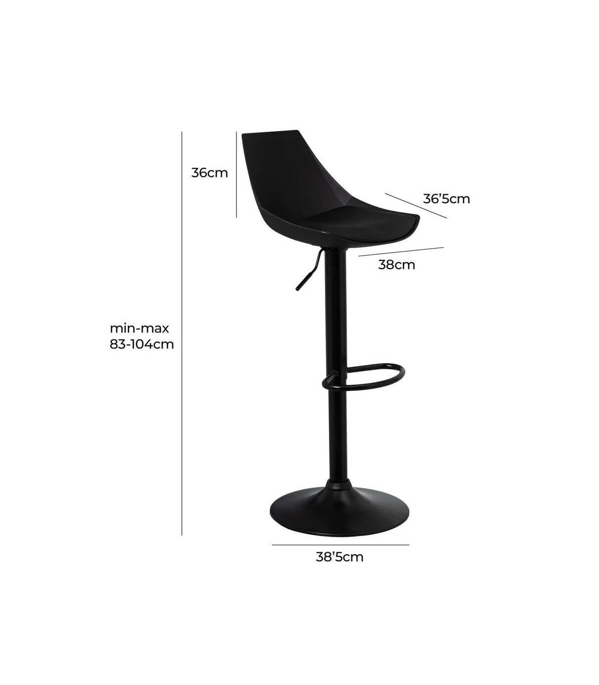 Set 2 taburetes para barra regulable en altura y giratorio de estilo contemporáneo, realizado en metal negro y polipiel negra, práctico, sencillo y muy cómodo, encaja en cualquier estilo de decoración.