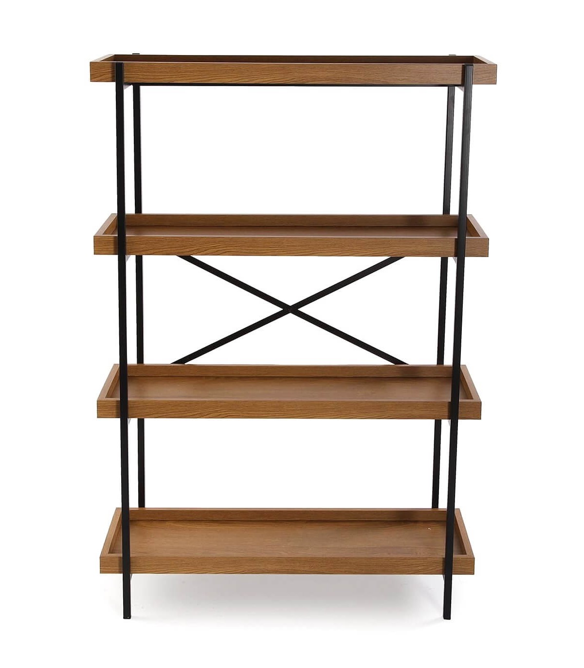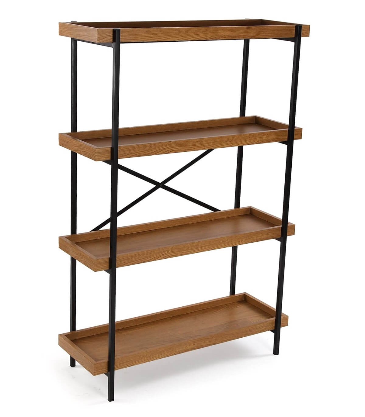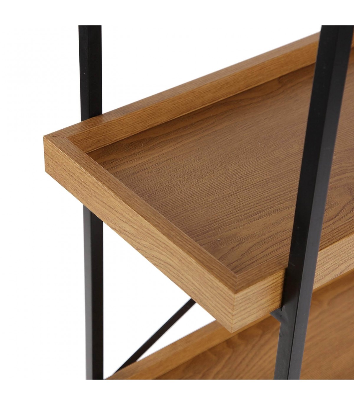 Librería estantería de estilo industrial, con 4 baldas estable y robusta, realizada en madera mdf imitación roble tostado y metal negro, ideal para una habitación, salón o despacho.
