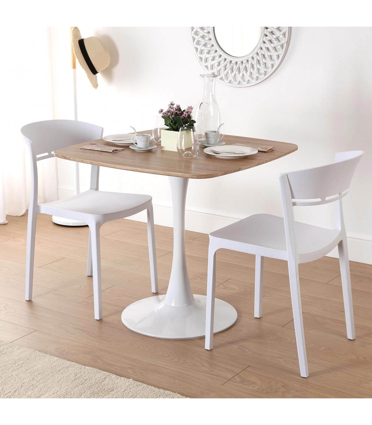 MESA DE COMEDOR 80 X 80 X 73 FLEP METAL BLANCO MDF IMITACION ROBLE