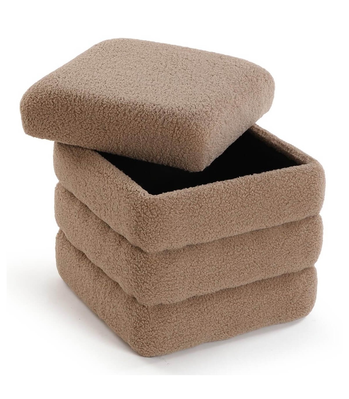 Puf con almacenaje, una pieza versátil y elegante de estilo contemporáneo. Tapizado en bouclé marrón, su tela 100 % algodón ofrece un tacto suave y transpirable, aportando comodidad y calidez a cualquier espacio.